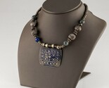 Ancien Argent Perlé Collier Avec Lapis Accents Et Émail Pendentif
