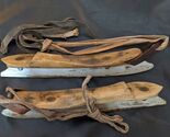 1800's Armada Primitive Ancien Bois Acier Glace Patins Cuir Bretelles Taille 25