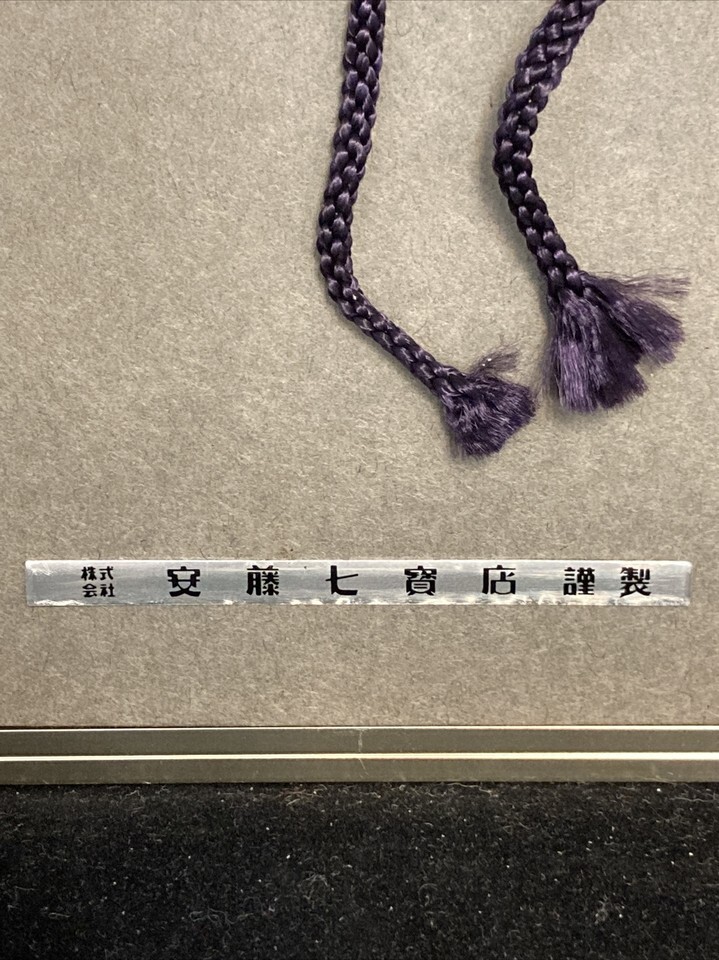 Tile might be named ?Seven Treasures of Ando? or it might have been the name of the seller - and we assume it?s a tile as it is framed. On back Google Translate seems to tell us the maker is Ando. See photos as we tried our best to obtain as much information as possible.