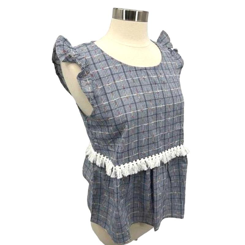 Very Unique Sleeveless Top. Ruffled Shoulders. Gathered "Skirt." Fringe Around Waist