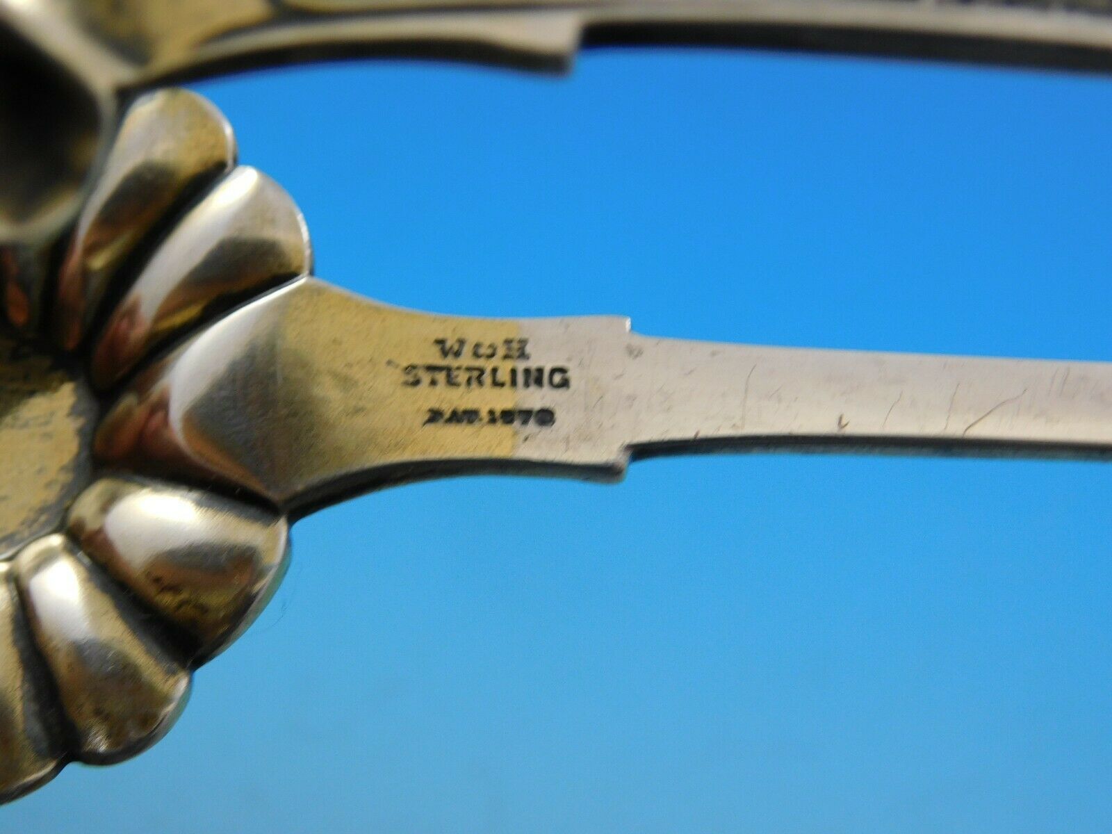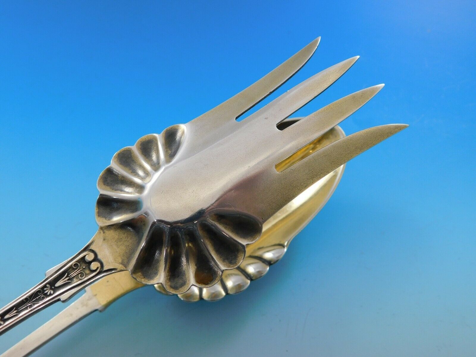 Sterling silver Salad Tong Fluted Gold Washed Bright Cut with Mono on Top 10" in the pattern Angelo by Wood and Hughes. It is monogrammed (see photo) and is in excellent condition.