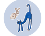 • A blue cartoon cat and fish.