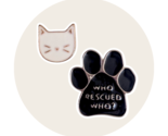 - Animal Enamel Pins: White Cat Paw Print, Who Rescued Who?