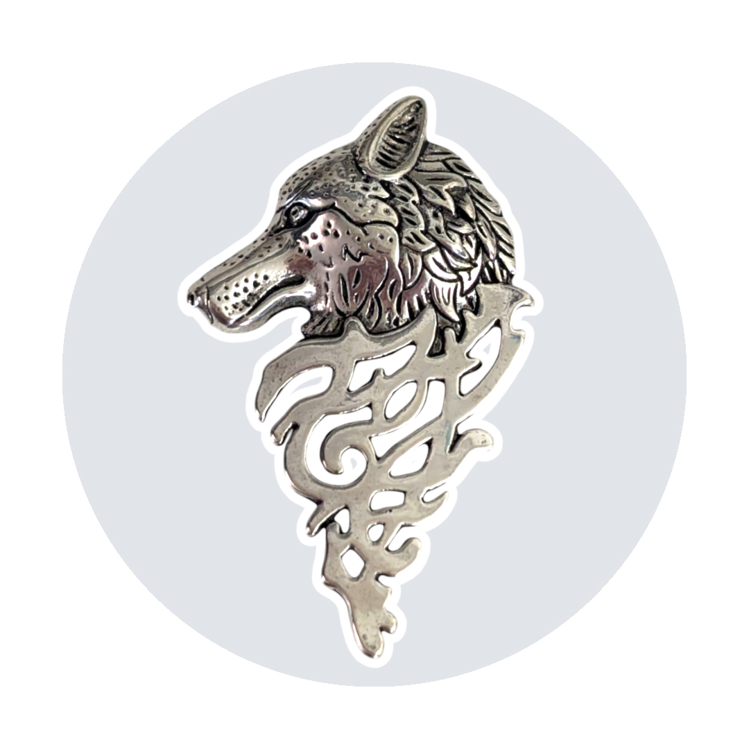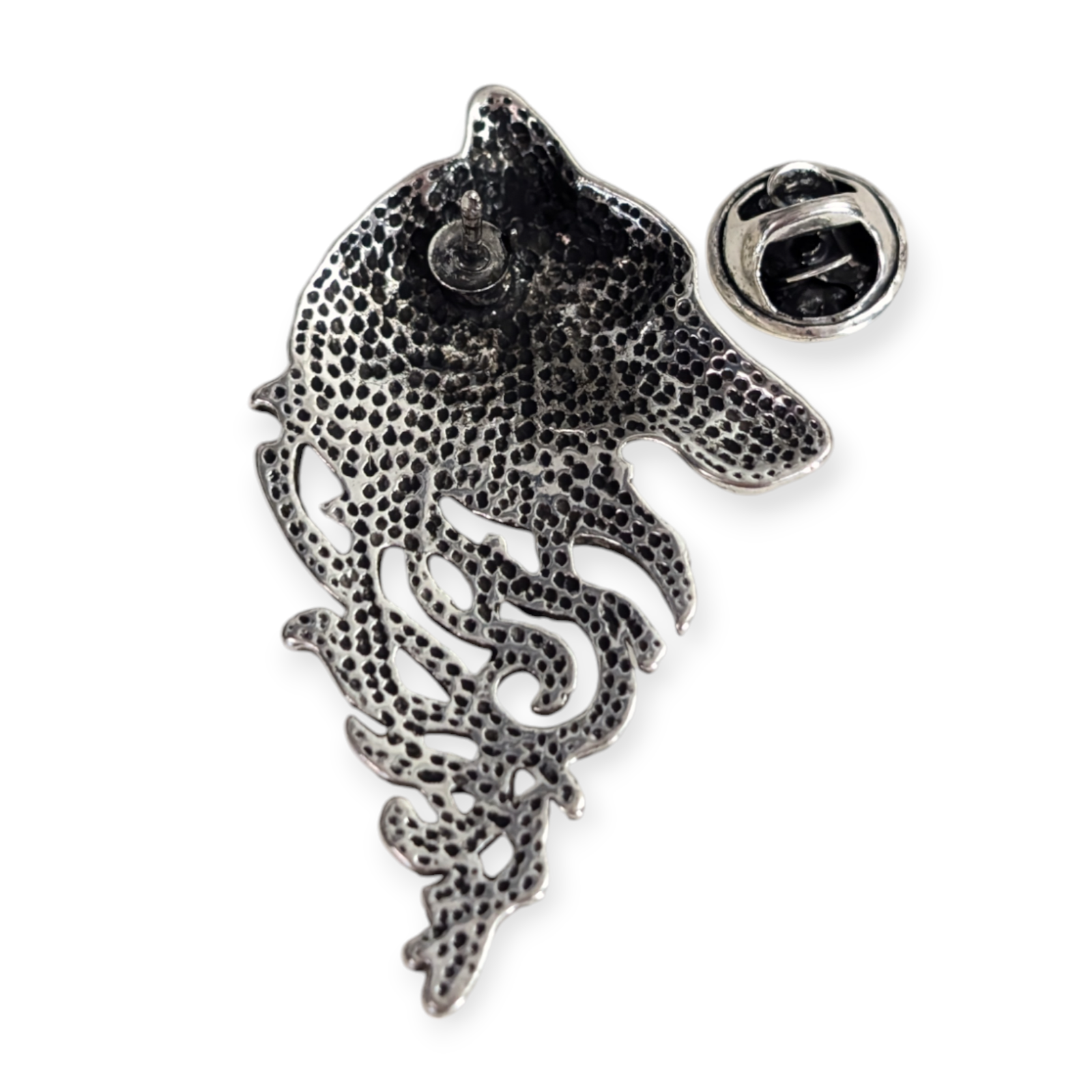 Animal Fantasy Enamel Pin: Silvertone Wolf Filigree