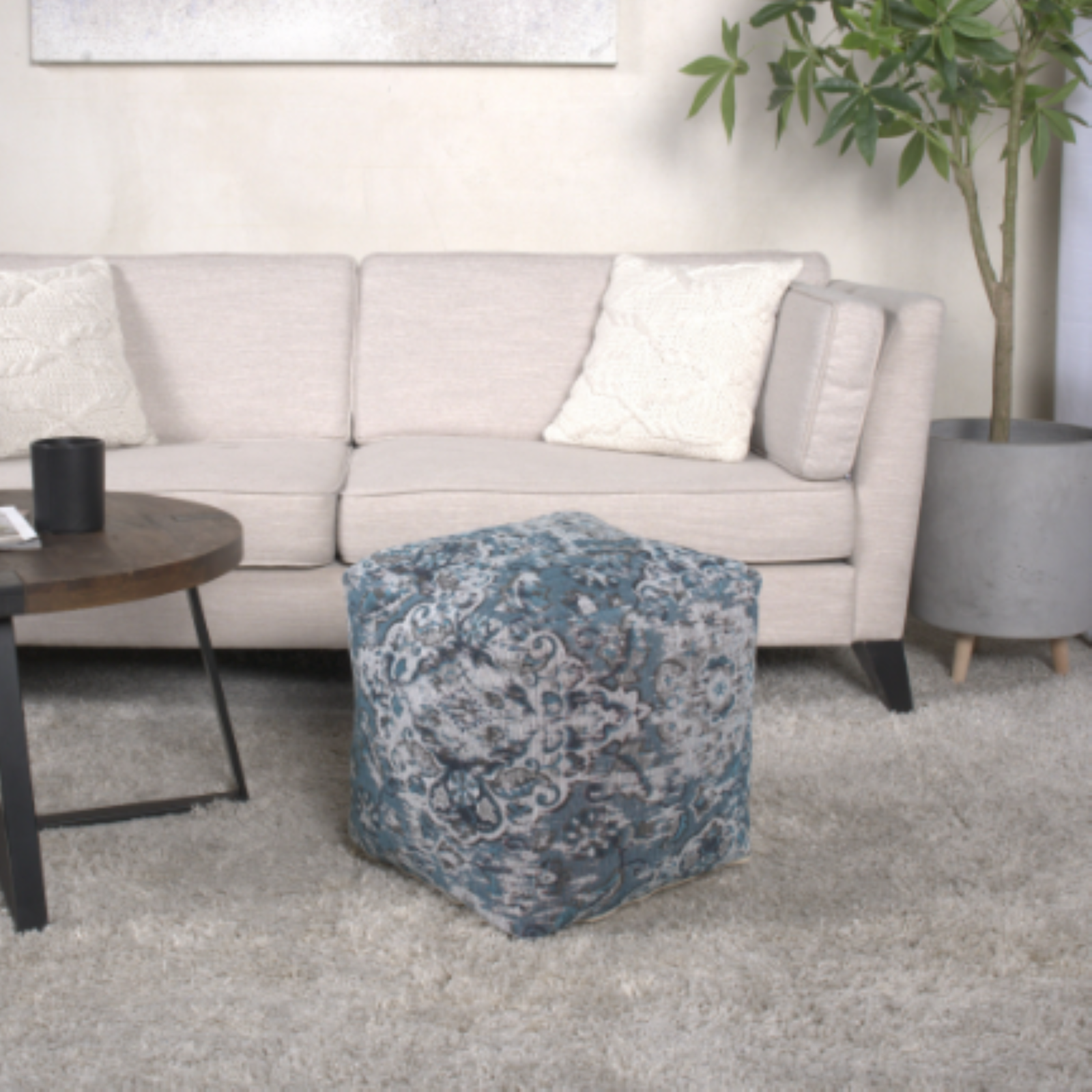 - Anita Blue Square Pouf Ottoman Floor Cushion 16x16x16