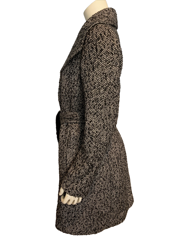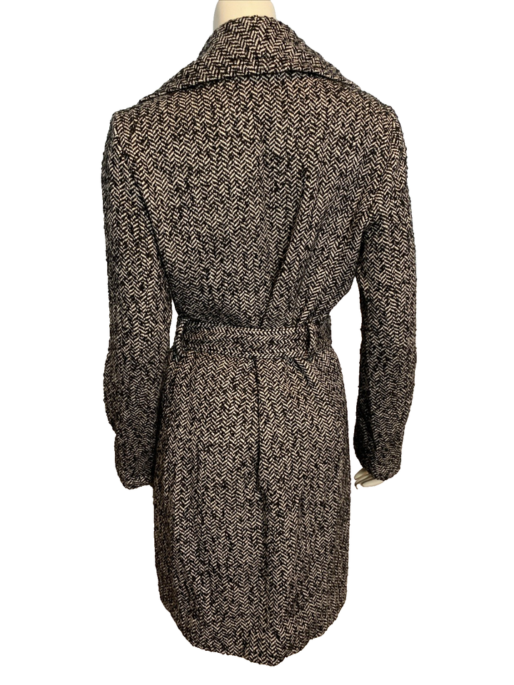 Ann Taylor Black and White Tweed Collared Long Sleeve Lined Belted Coat Size M
