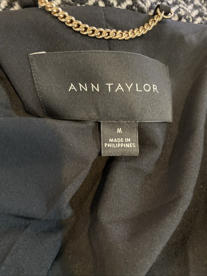 Ann Taylor Black and White Herringbone Tweed Lined Coat