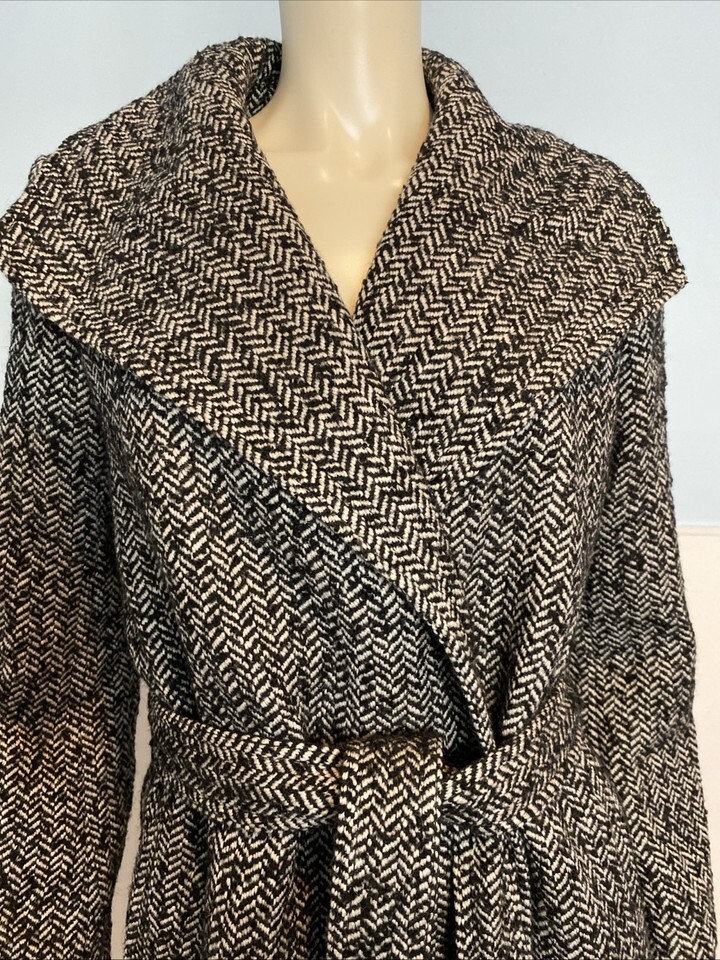 - Ann Taylor Black and White Tweed Collared Long Sleeve Lined Belted Coat Size M