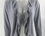 Ann Taylor Loft Cardigan Blue Gray Size Large Open Front Ruffle Womens