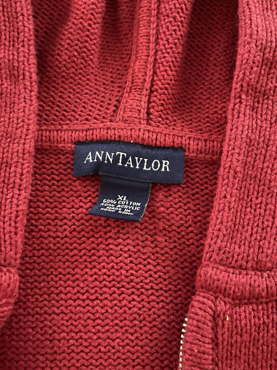- Ann Taylor Red Full Zip Hooded Cotton Blend Sweater Size XL