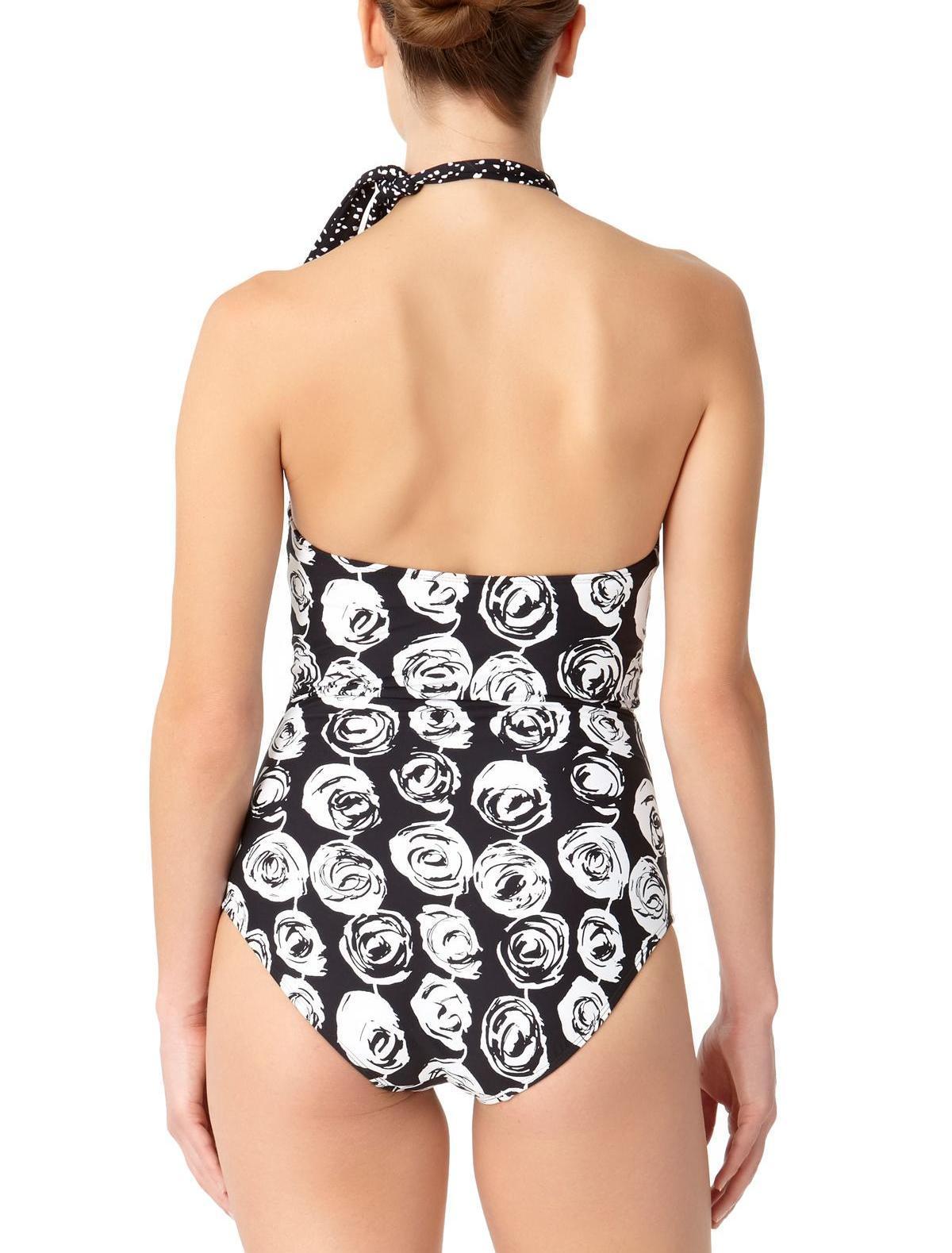 - Anne Cole Swimsuit Women's Coming Up Roses Scarf High Neck One-Piece Black Sz 14