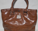 Anne Klein Brown Handbag Purse Shopper Double Handle Gold Metal Trim