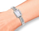 Case: Rectangular silver, white dial, silver case, silver indices numbers, silver hands, inscribed Anne Klein