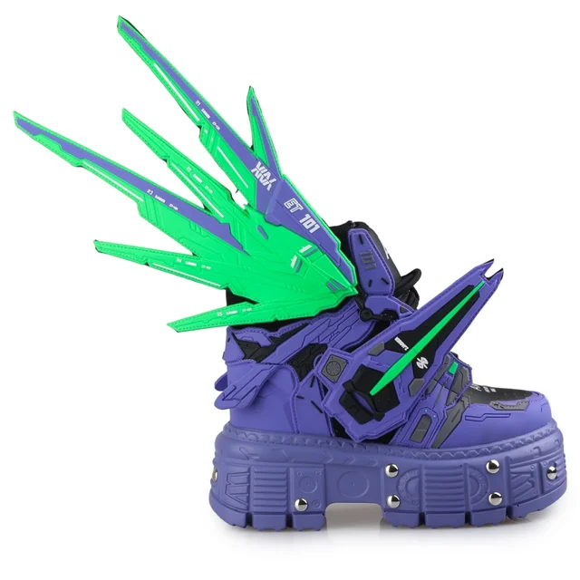 Anthony Wang Anime Gundam Mech Purple & Neon Green Sneakers Sz 9