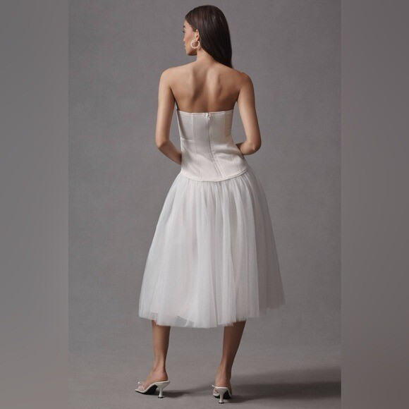 - Anthropologie BHLDN Strapless A-Line Satin Tulle-Skirt Midi Dress Size Small NEW