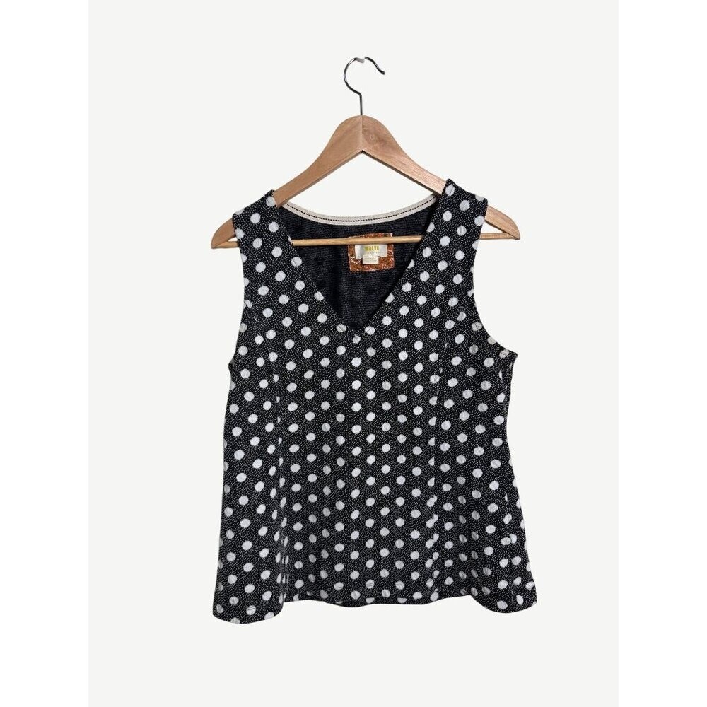 - Anthropologie Maeve Black and White Polka Dot Jaquard Tank, Sz Large