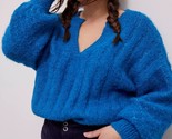 - Anthropologie Pilcro Maggie Blue V Neck Fuzzy Sweater Oversized Fit Size S