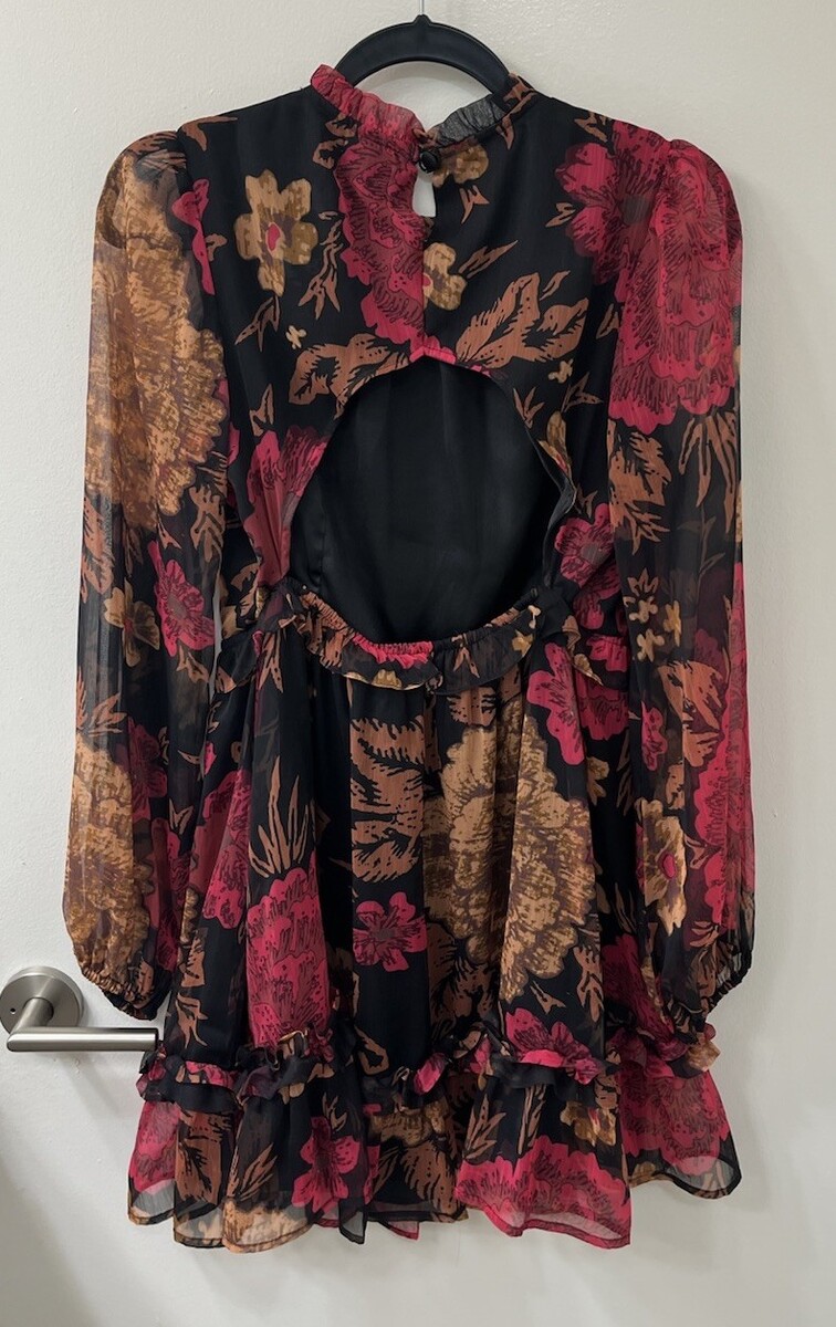 - Anthropologie Porridge Puff Sleeve Open Back Floral Mini Dress Black SIZE Medium