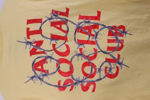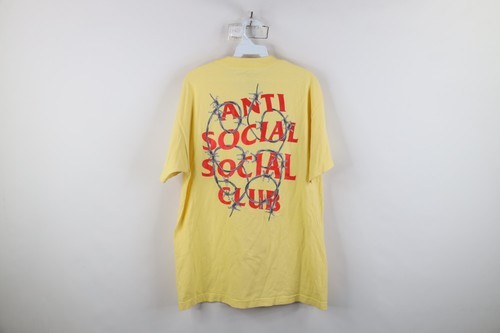 - Anti Social Social Club Mens Large Spell Out Barbed Wire T-Shirt Yellow USA