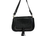 - Antik Kraft Vegan Leather Black Studded Fringed Saddle Bag EUC Biker Core