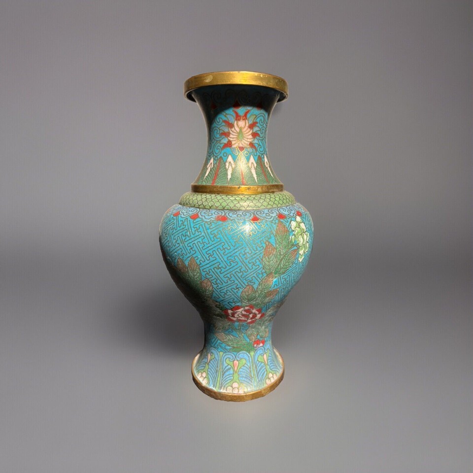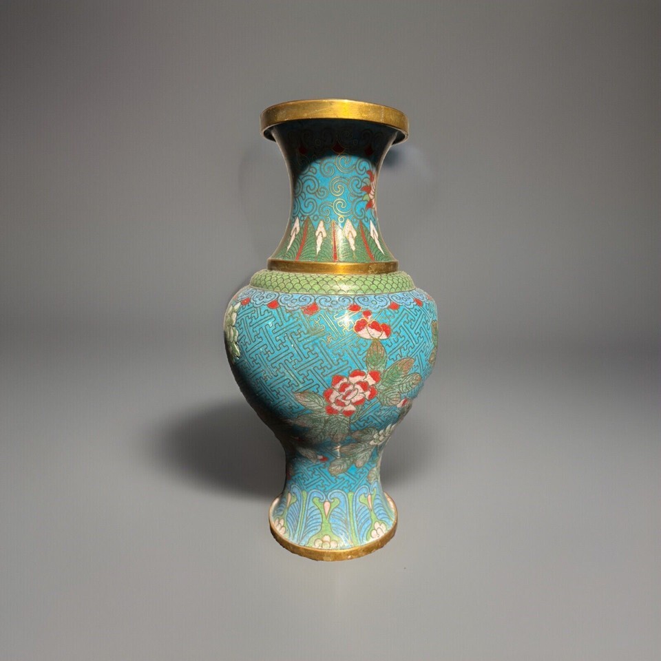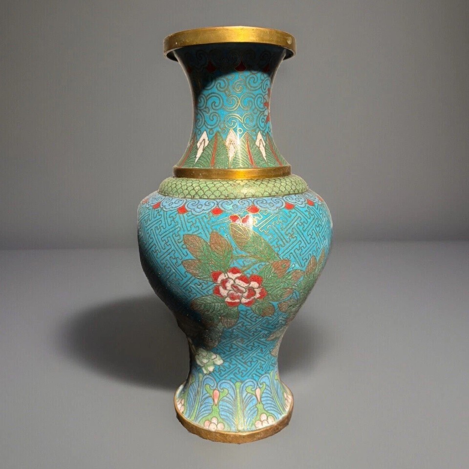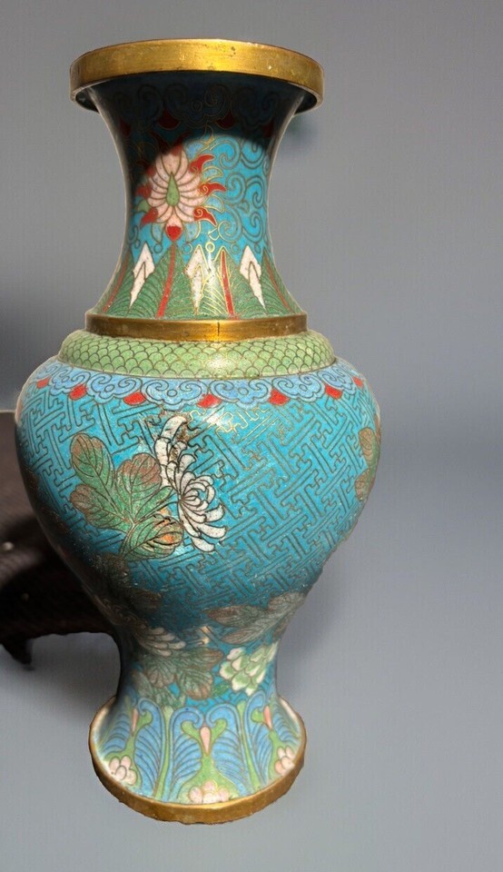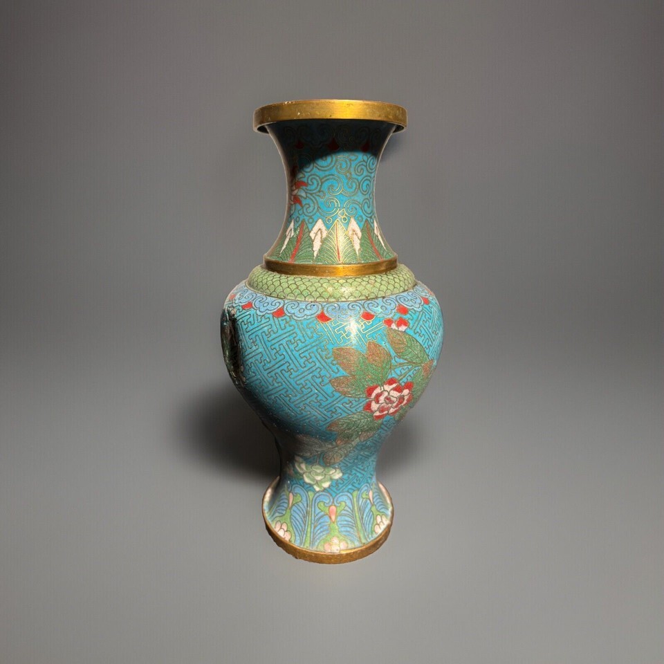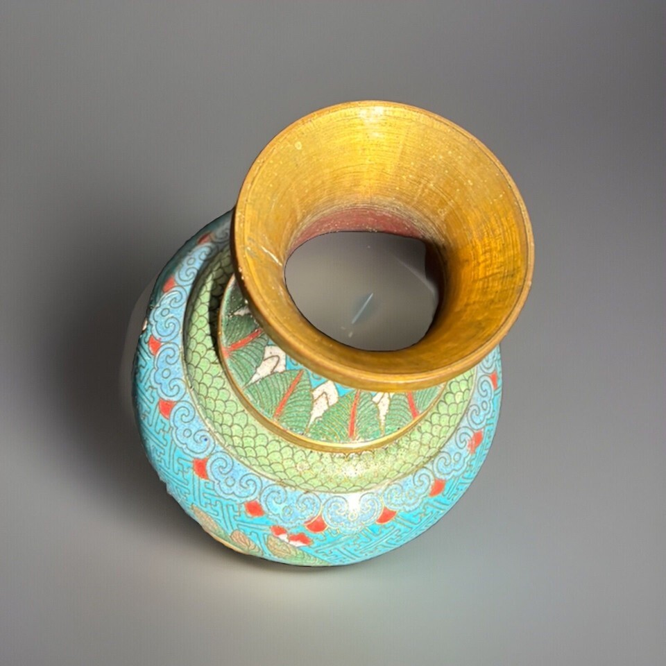 - Antique 13th Century China Dynasty Bronze Cloisonné Vase 9”