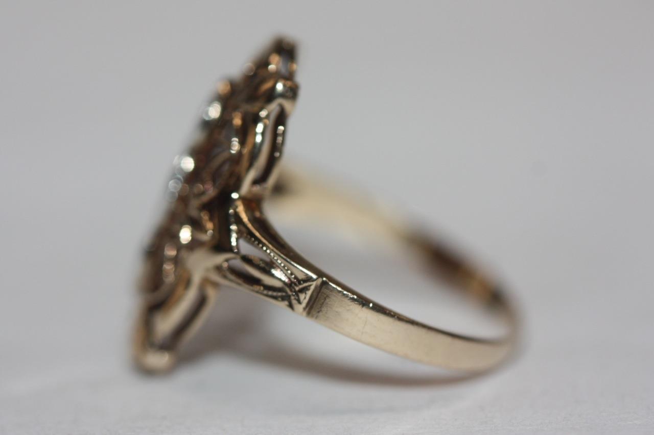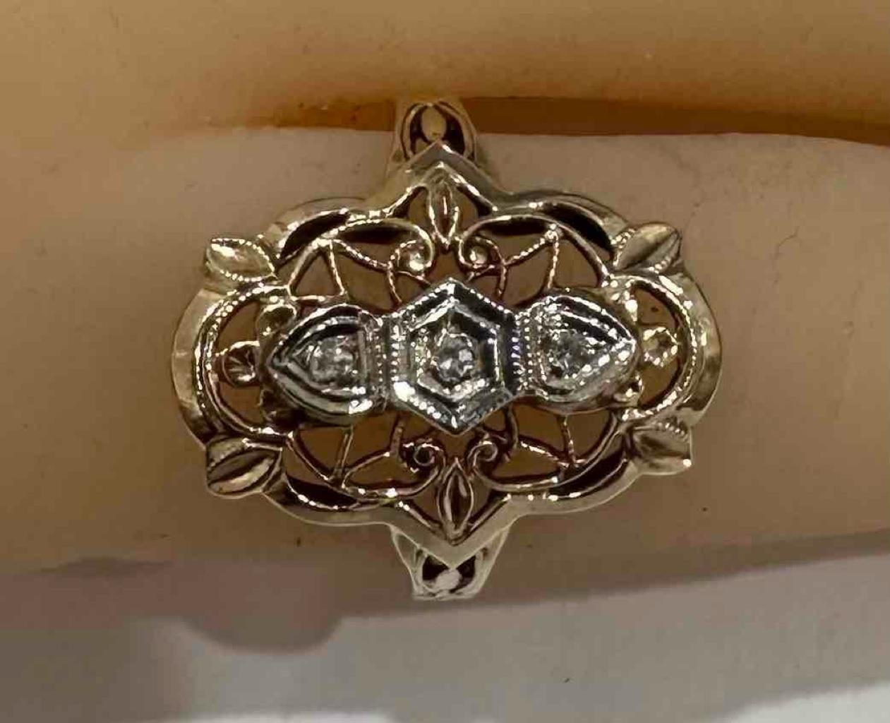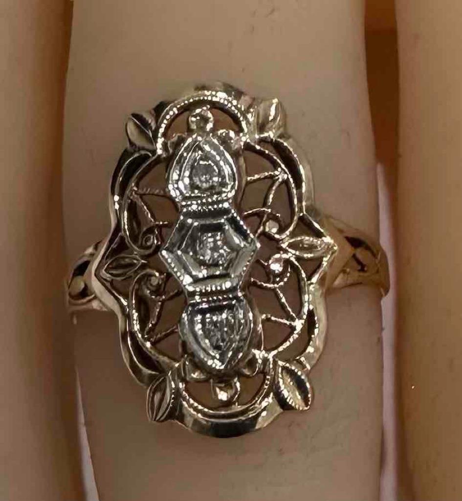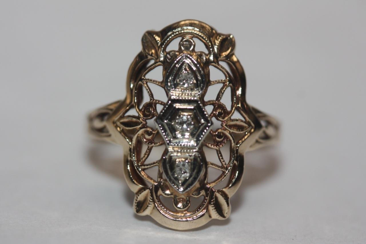 - ANTIQUE 14K YELLOW GOLD FILIGREE ART DECO RING WITH DIAMOND ACCENTS SZ 5