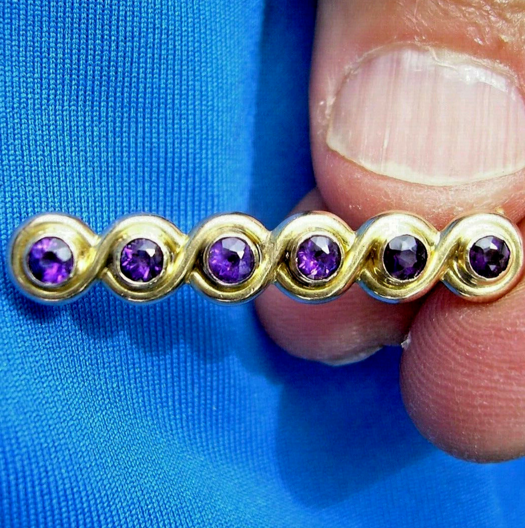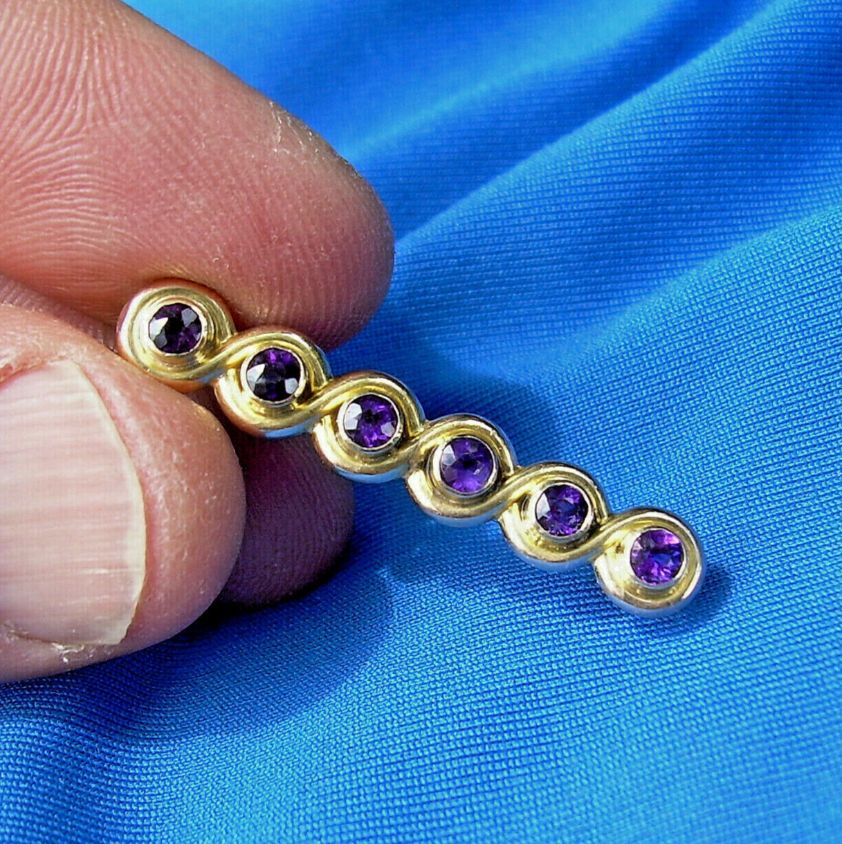 - Antique Amethyst Art Deco Brooch Gatsby era Vintage Solid 14k Gold Bar Pin Clip