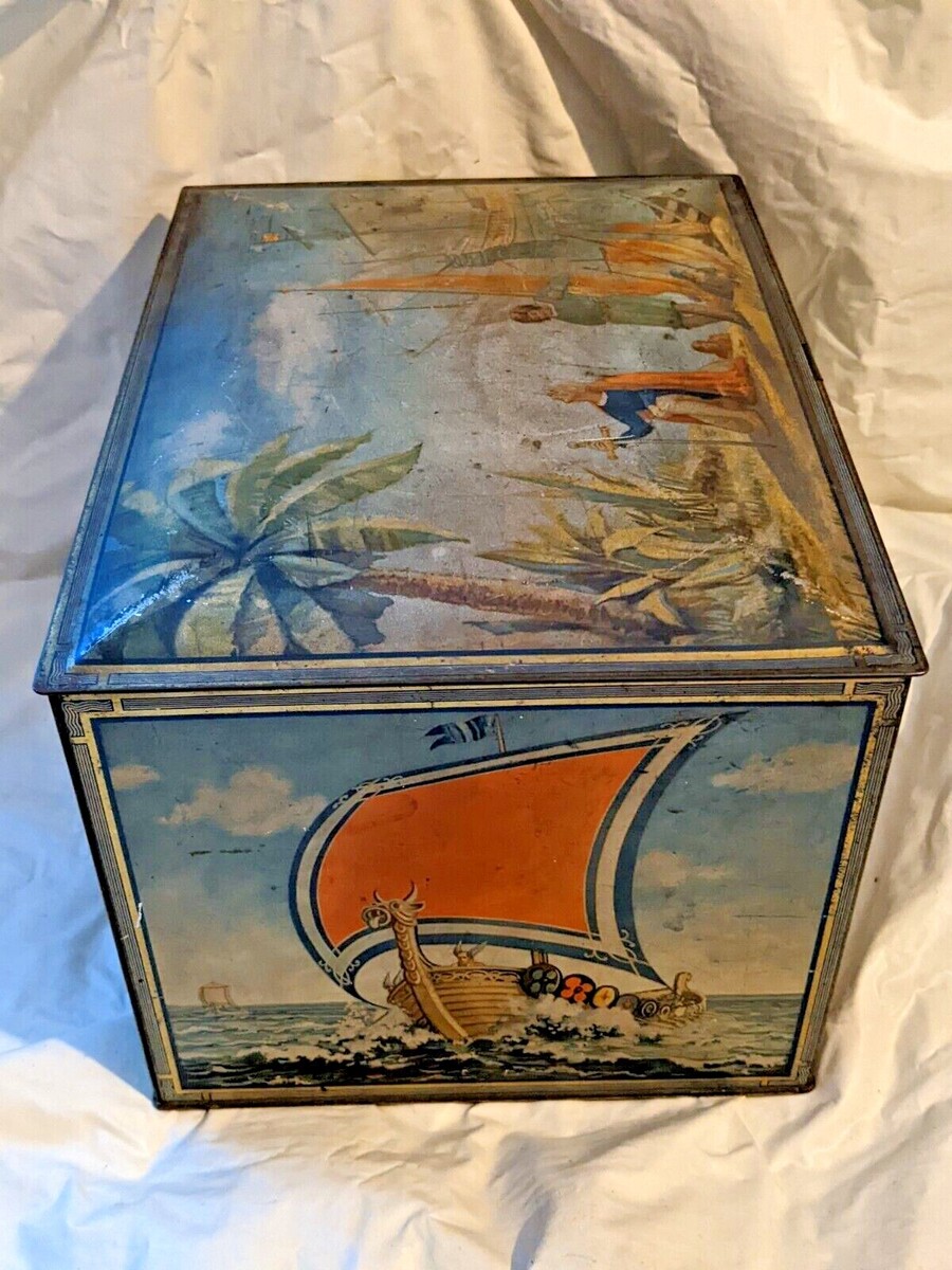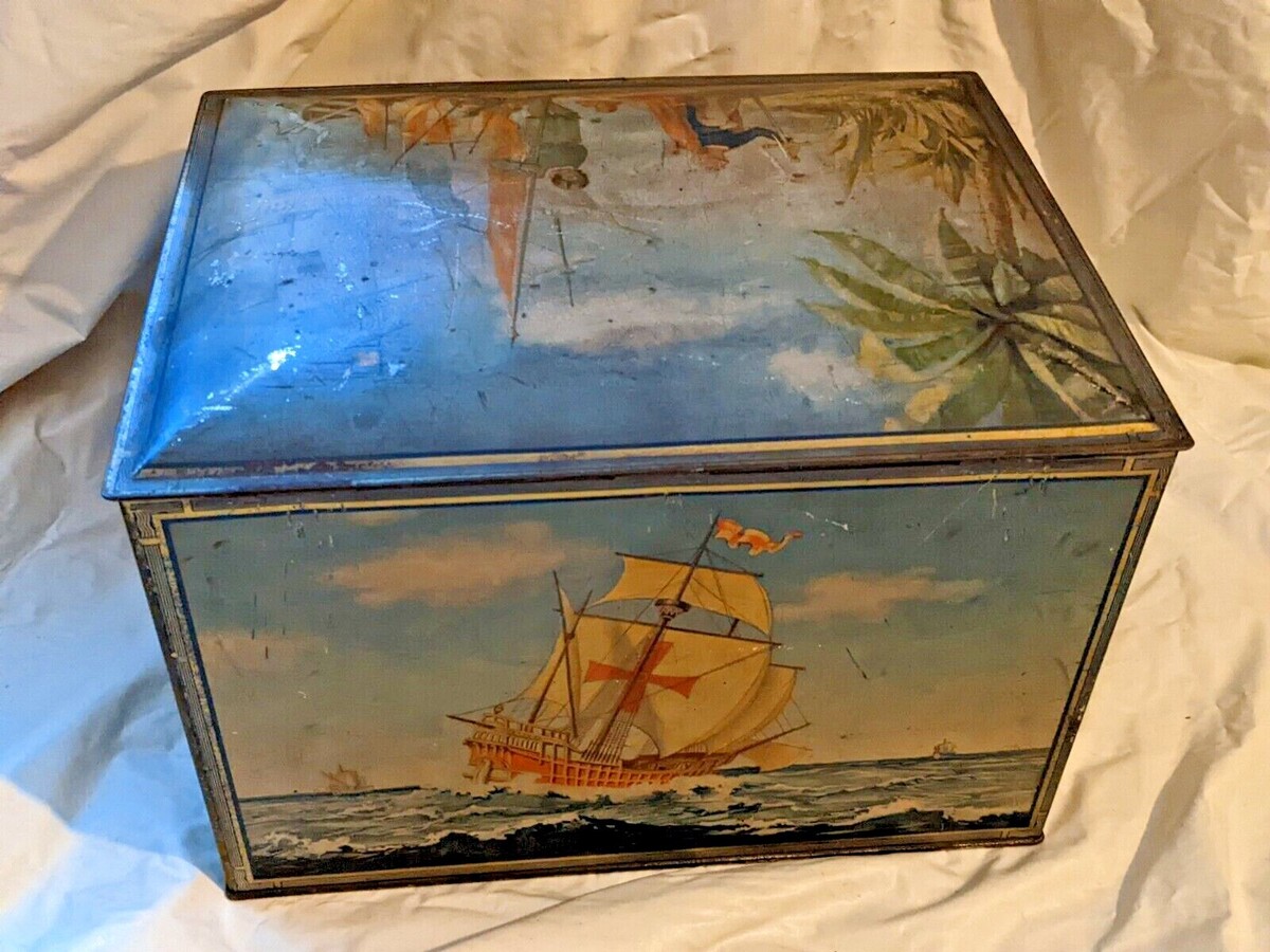 - Antique Biscuit Cracker Boite Columbus Nina Pinta Lithographie Graphiques Verrou