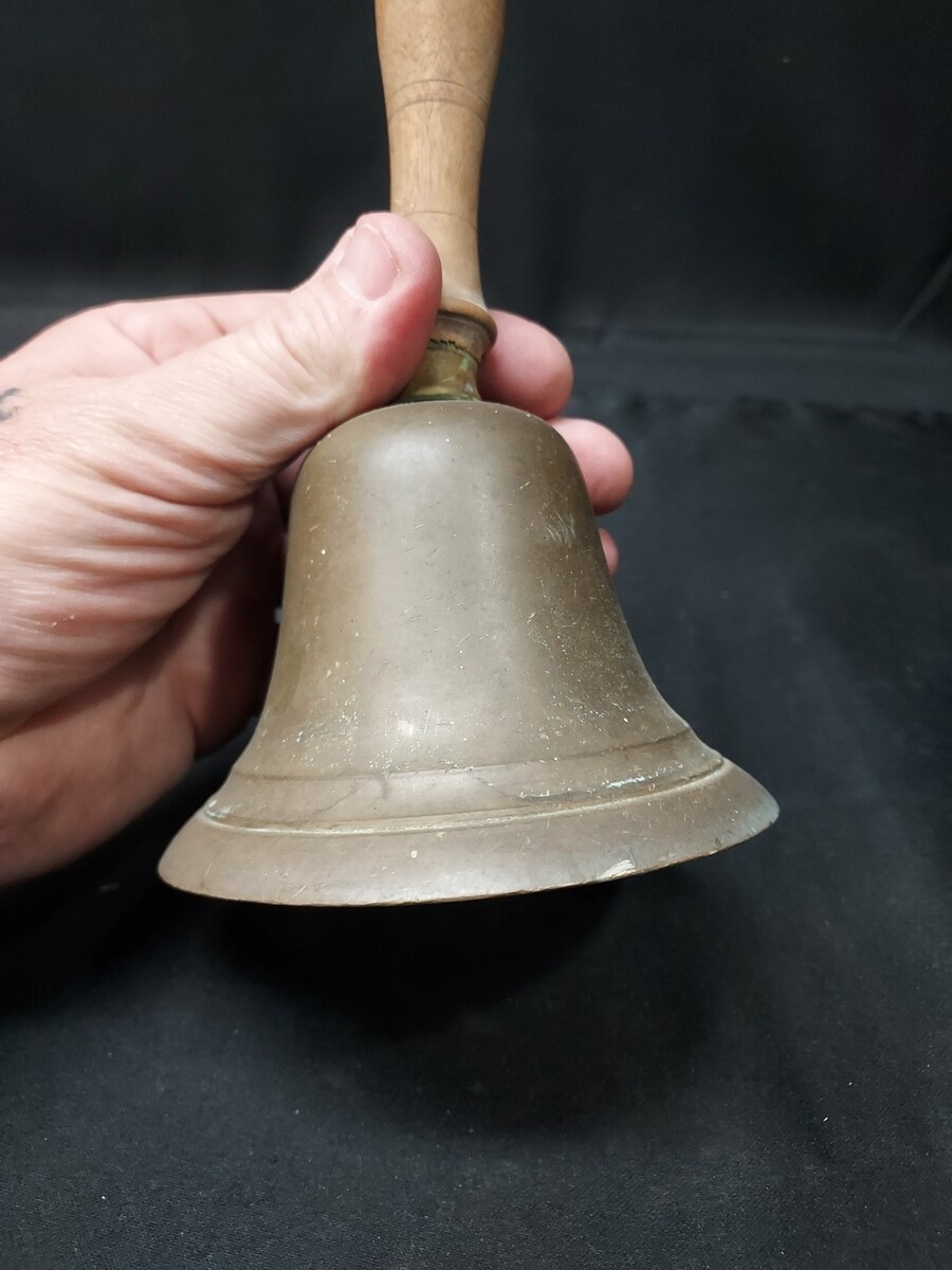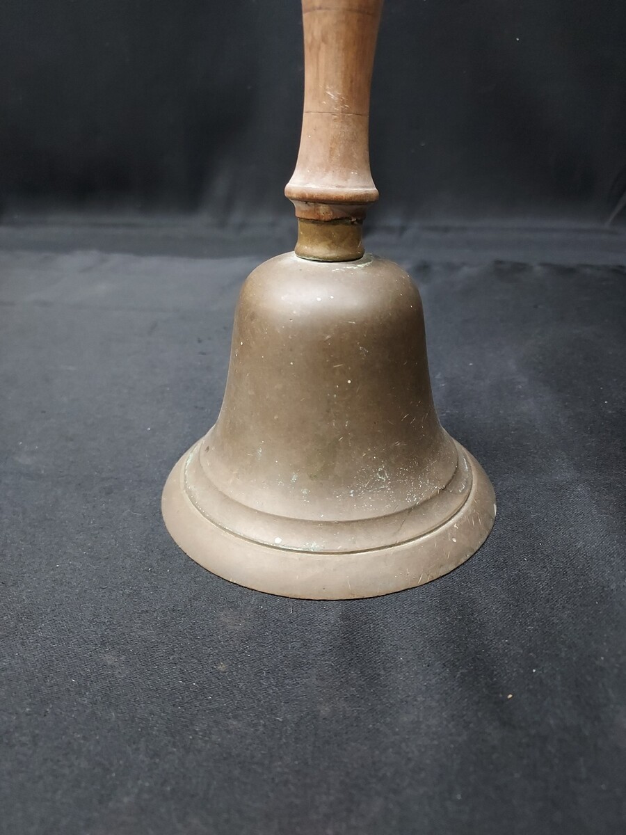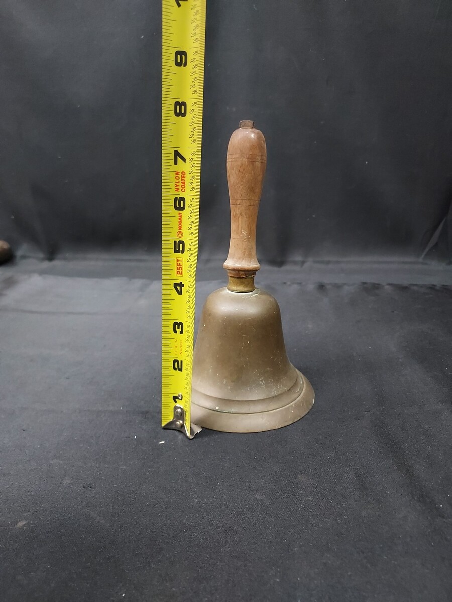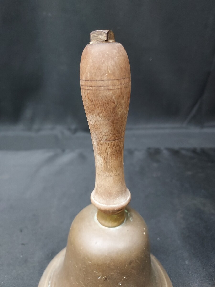 - Antique Brass Wood Handle Handheld Teacher School Room Ringing Bell Vintage