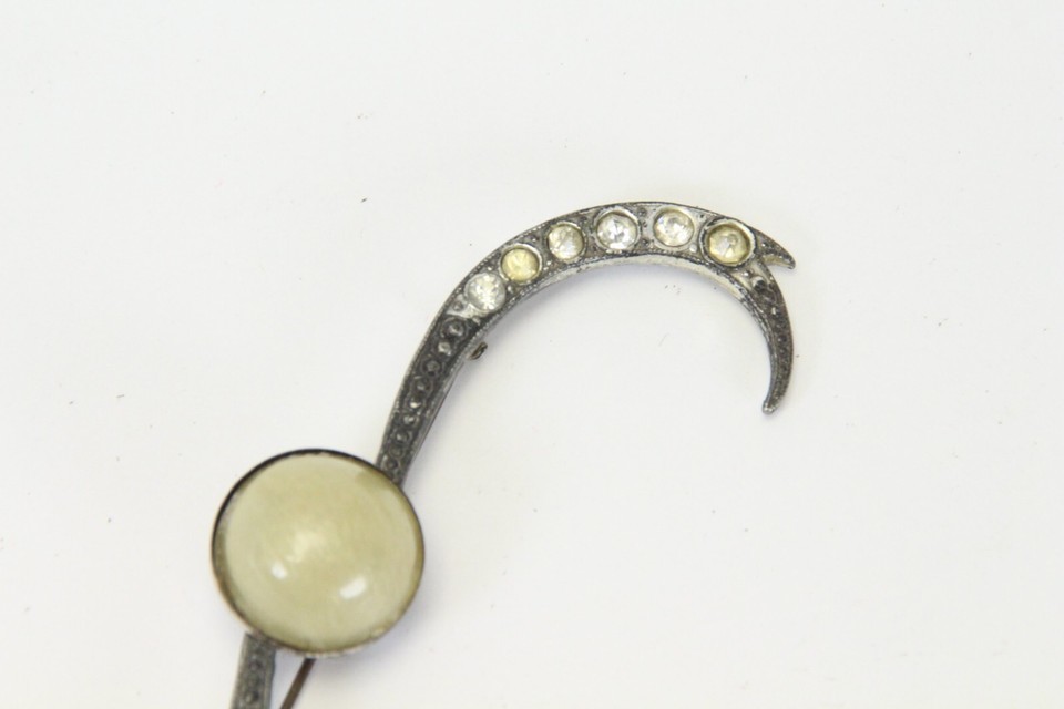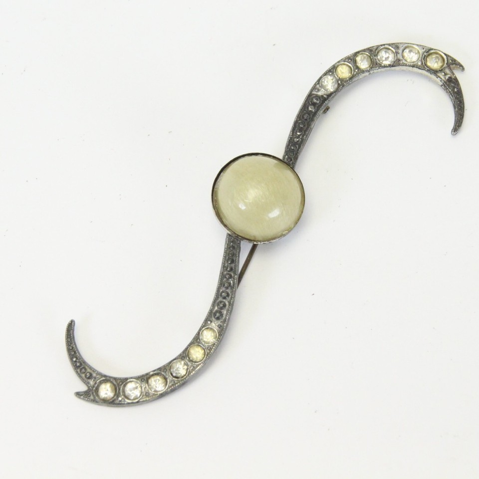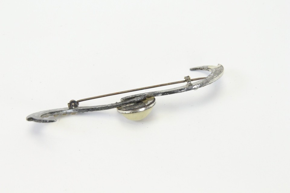 - Antique Brooch Pin Rhinestones 4" Long Sliver Tone