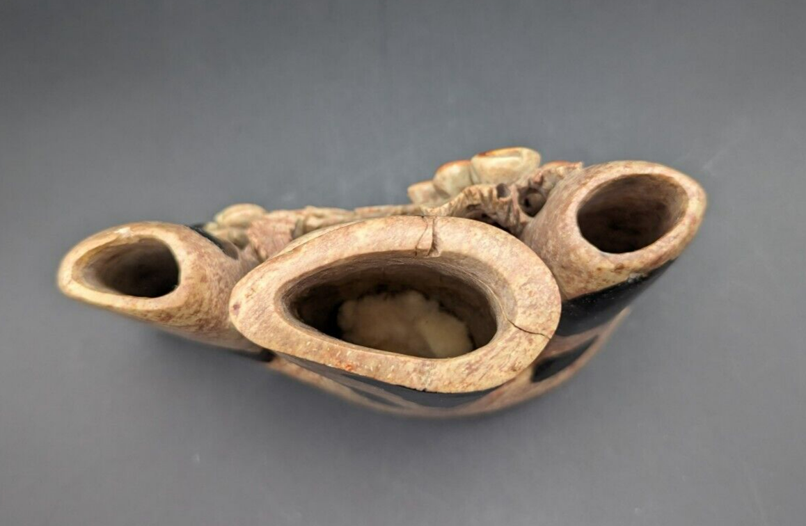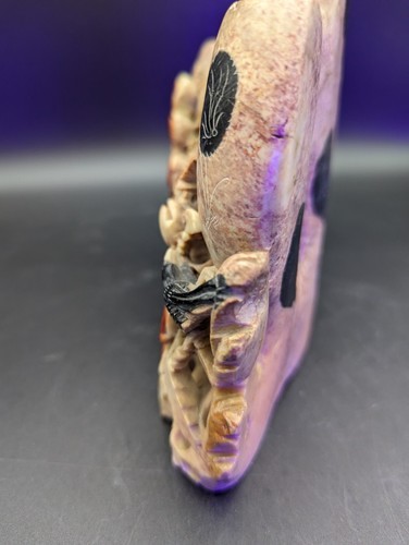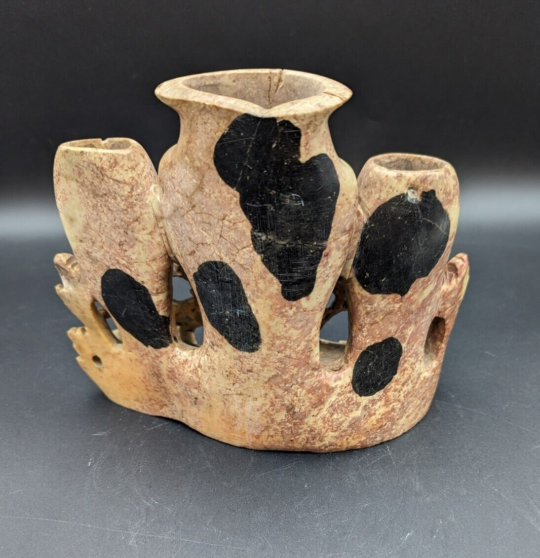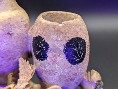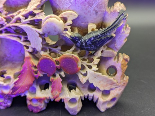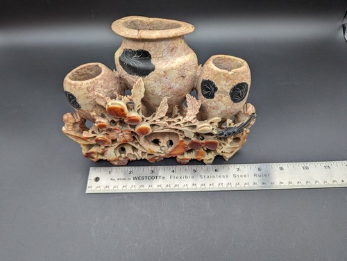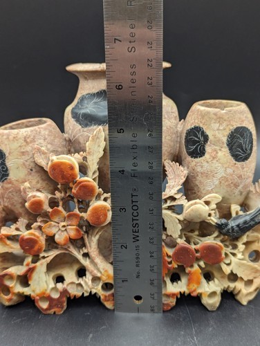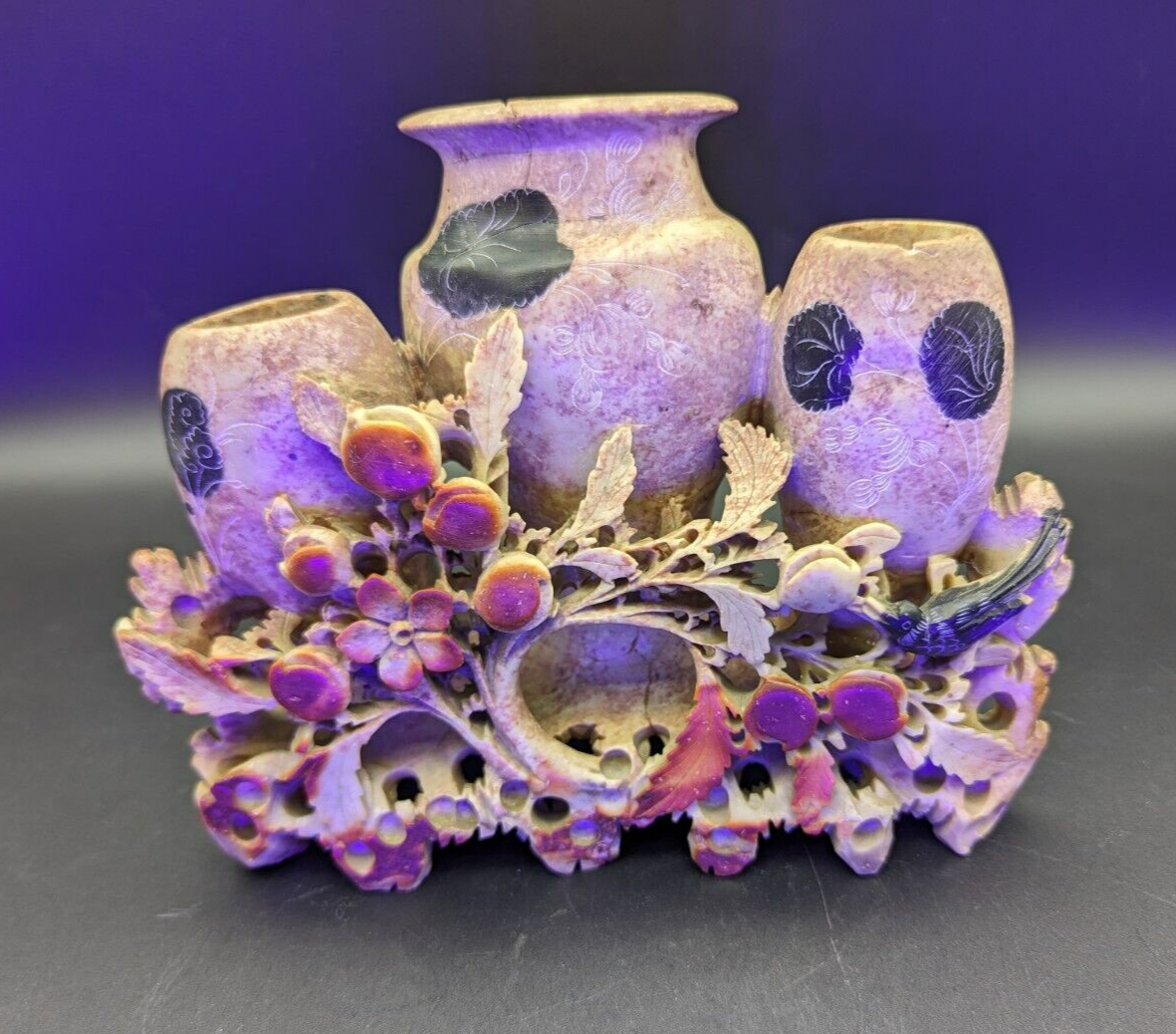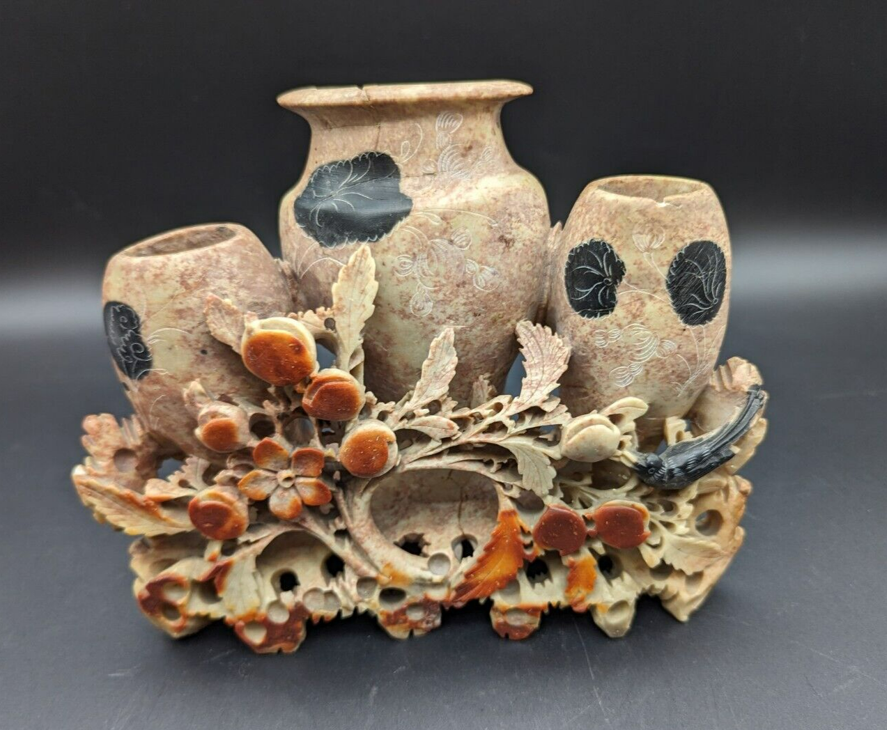 - Antique Chinese Floral Hand Carved Soapstone Sculpture Vase Vintage 8" 3D Crow