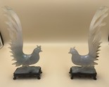 - Antique Chinese Pair Of Exquisite Jadeite Phoenix w/Elegant Tail Rosewood Stand
