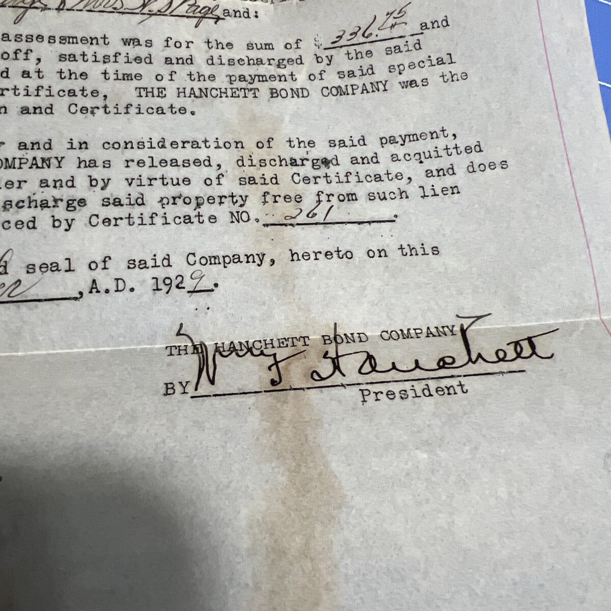 Antique Court Document Hanchett Bond Company Signed 1929 Cook County Notary