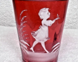 Antique Cranberry Tumbler Mary Gregory Style Enameling Mouth Blown 3 7/8 Inch tall base is 2 1/4 top is 3 inches
