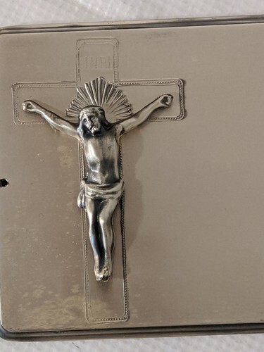 - Antique Crucifix INRI Jesus Christian Coffin Casket Funeral Plaque Metal Silver