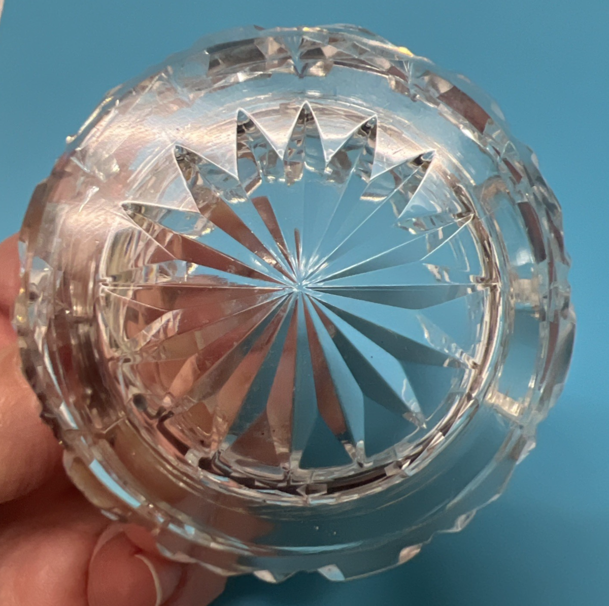 - Antique Cut Crystal Bucket Shaped Open Salt Dip Grid Design 1 3/4 x 2 x 1 1/8 In