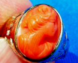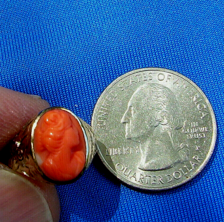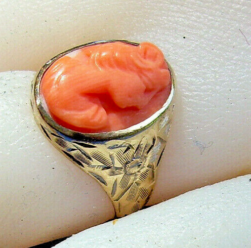 - Antique Deco Mediterranean Coral Ring Victorian Hand Engraved 10k Solid Gold