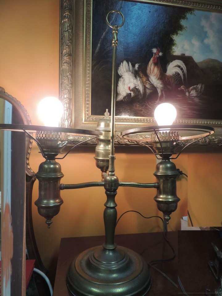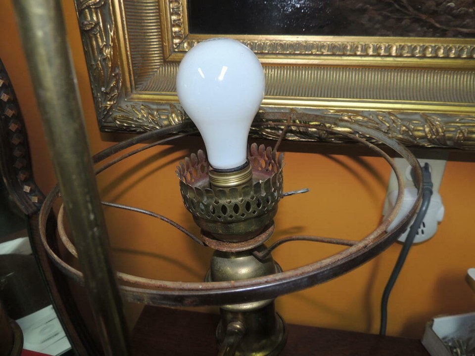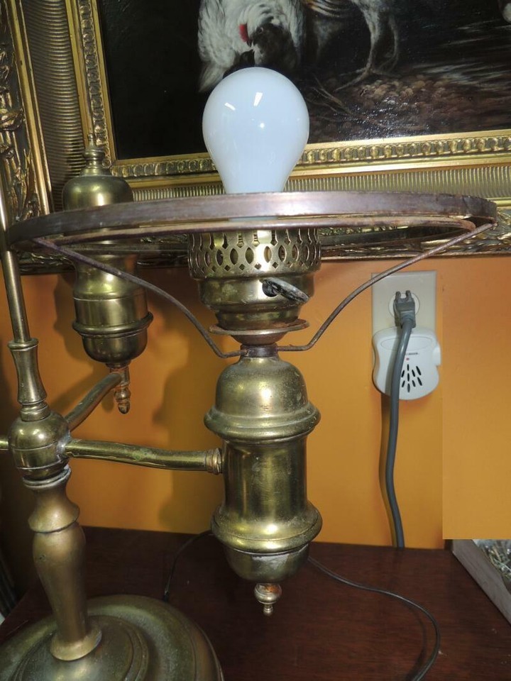 - Antique Double Hurricane Style Desk Lamp no shades 10" fitters Electric Oil Gas