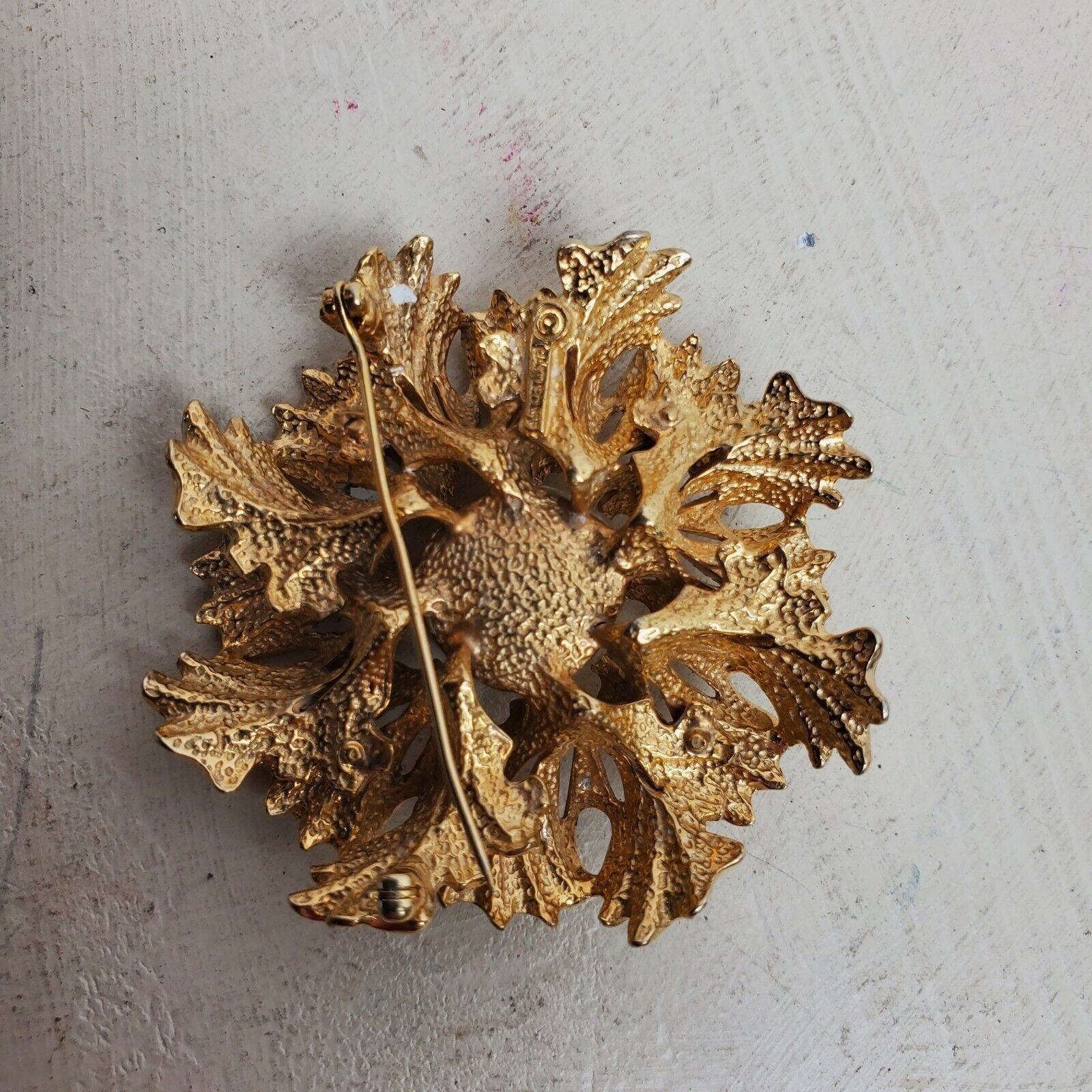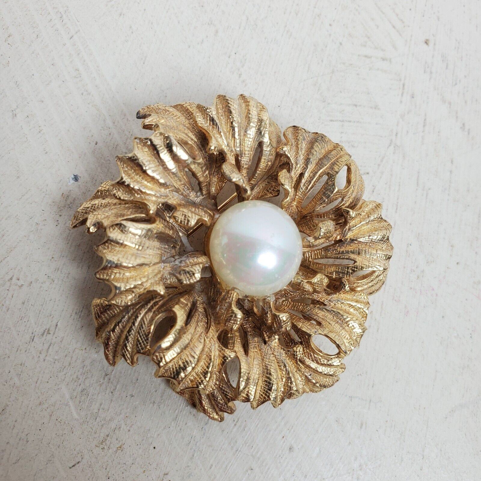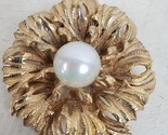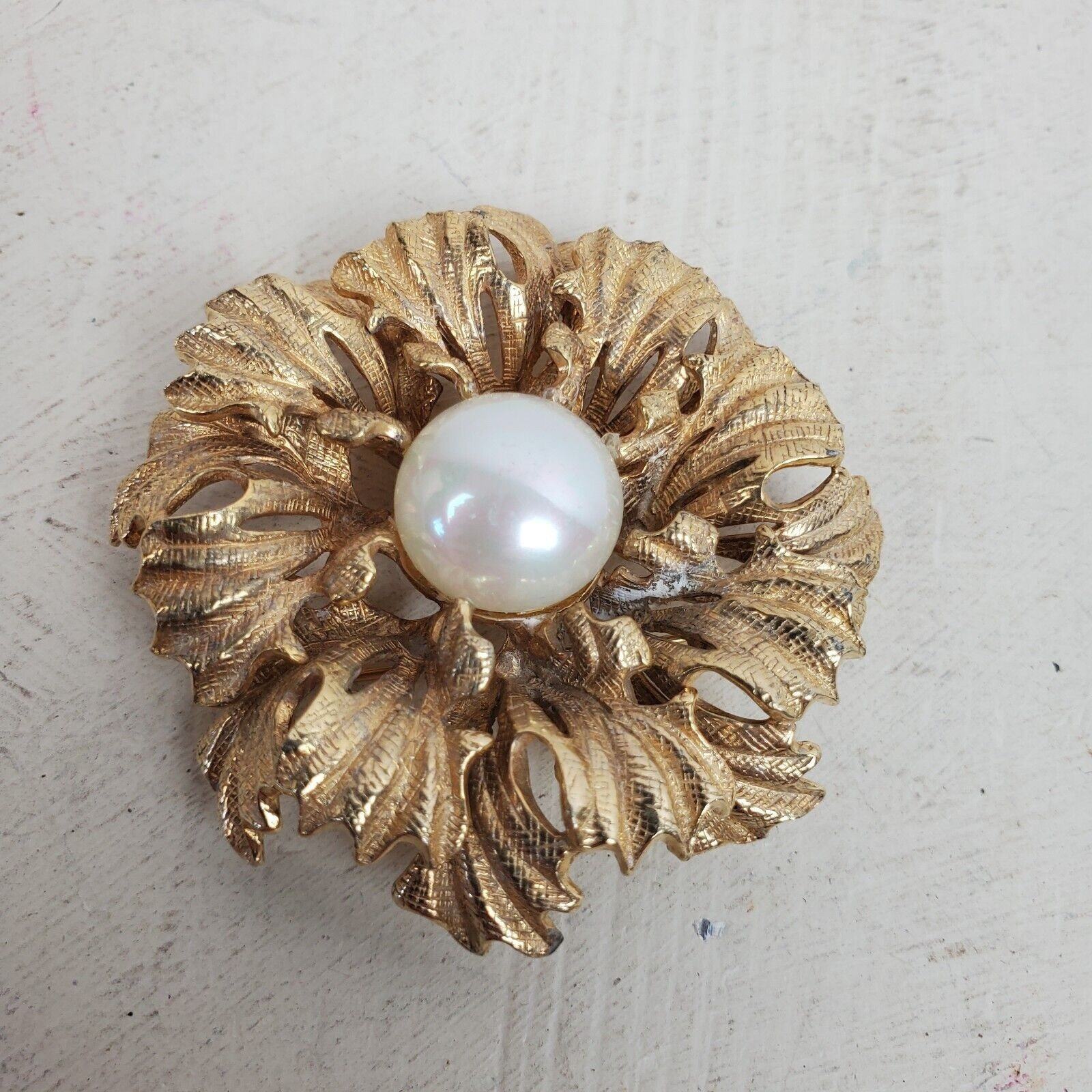- Antique Estate Brooch Gold Tone w/ Faux Pearl 2.25" Rhinestone