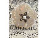 ANTIQUE ESTATE CARVED MOP MOTHER OF PEARL FLOWER RING 925 Pearl Sz 6 in beautiful condition, a little tarnished but the genuine pearl and marcasite on top of the carved mother of pearl flower is in great shape. The flower is quite large at 1 1/4".