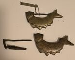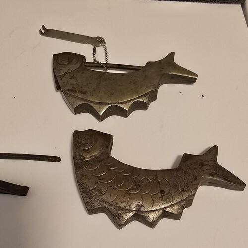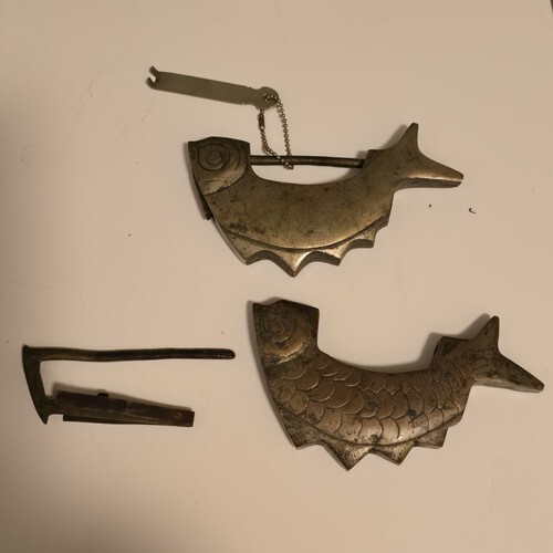 Great pre-owned Condition (2) Antique Fish Shaped Silver / Bronze Color Metal Lock / Chinese Padlock For Drawers / Jewelry Boxes + 1 Key.