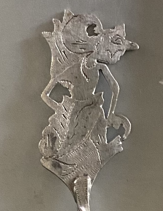 This listing features what we've called; Freaky Fairy 600 Coin Silver Souvenir Spoon. Its an interesting spoon created a very long time ago.