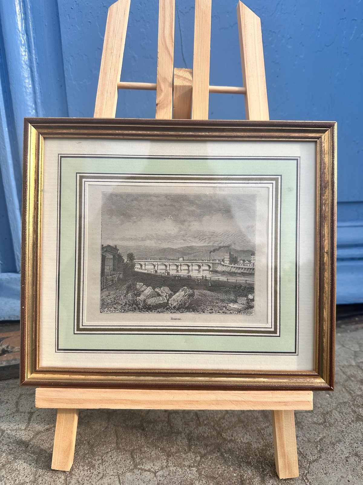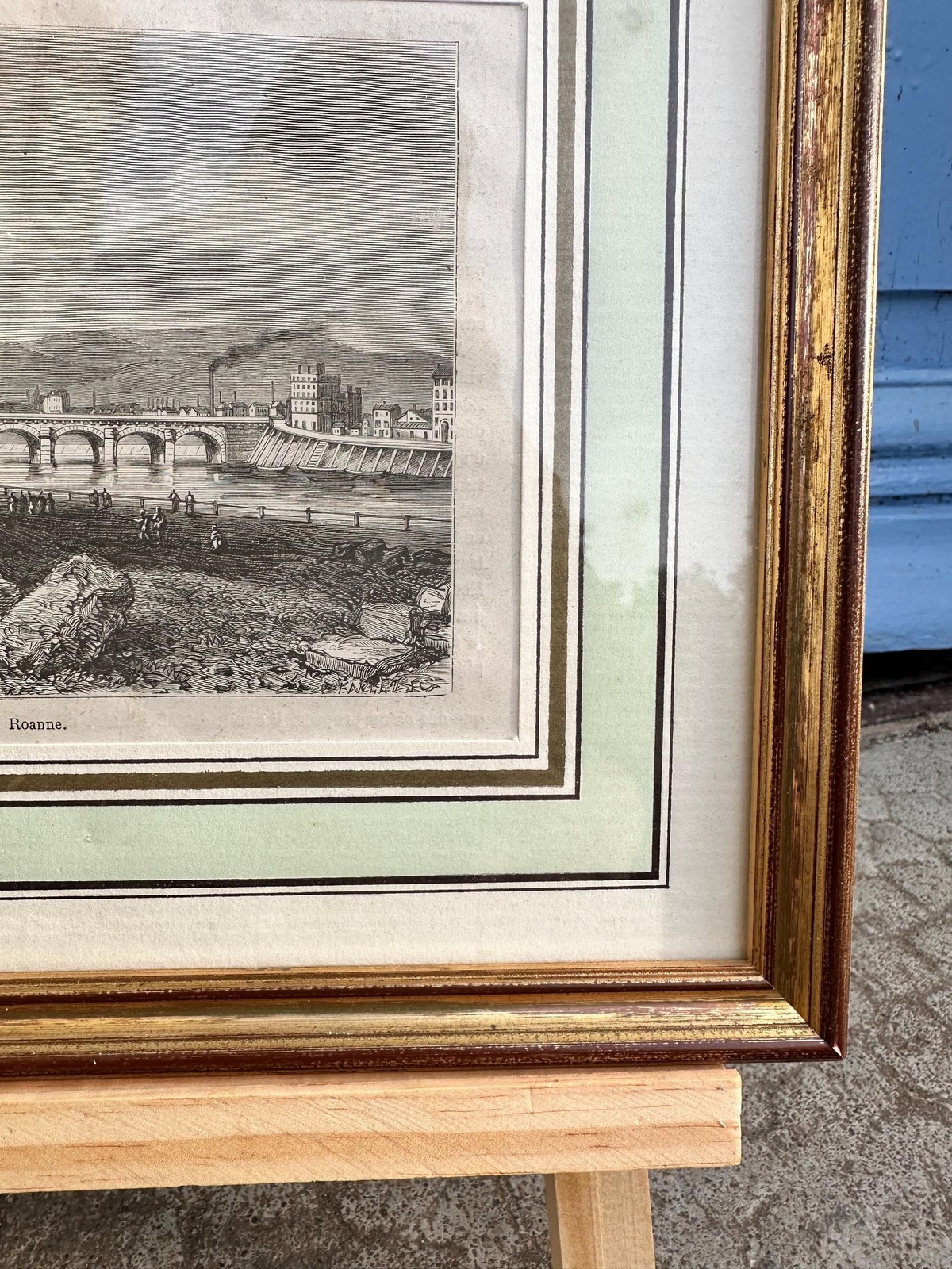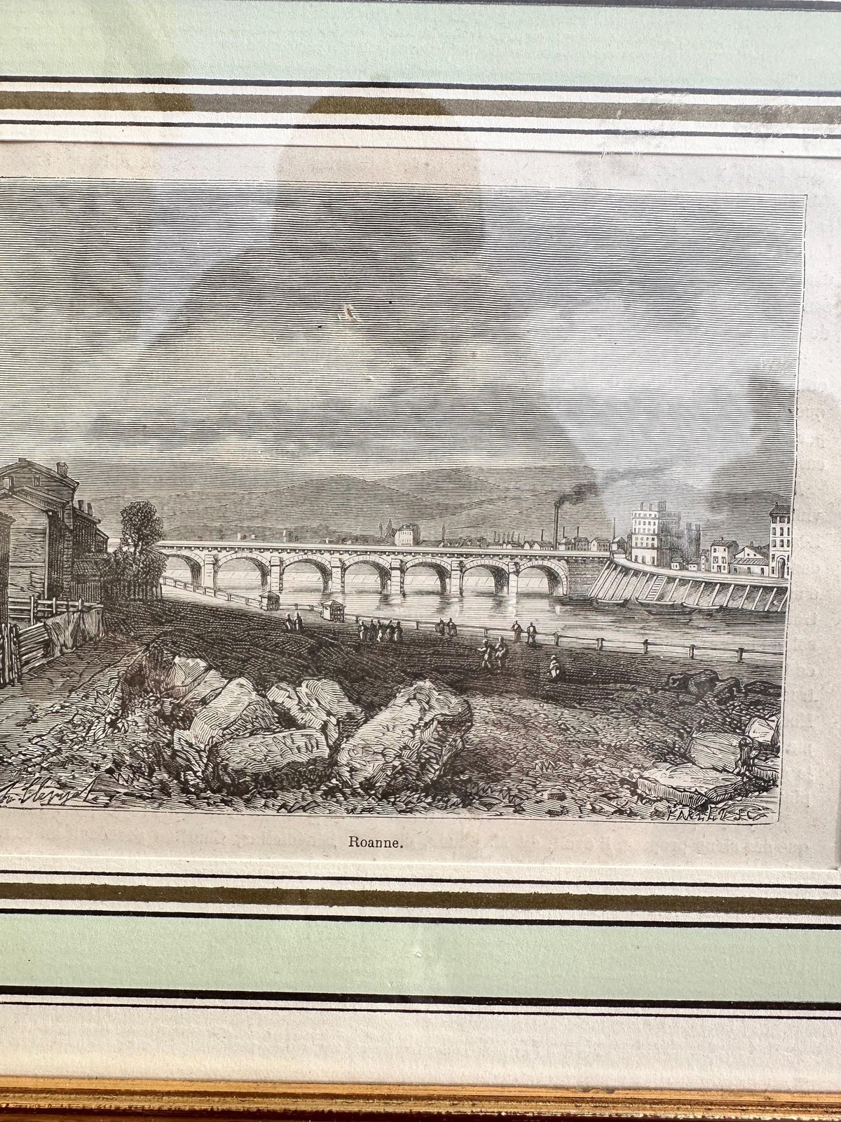 - Antique French Engraving Roanne River Scene Vintage 19th Century Landscape Print