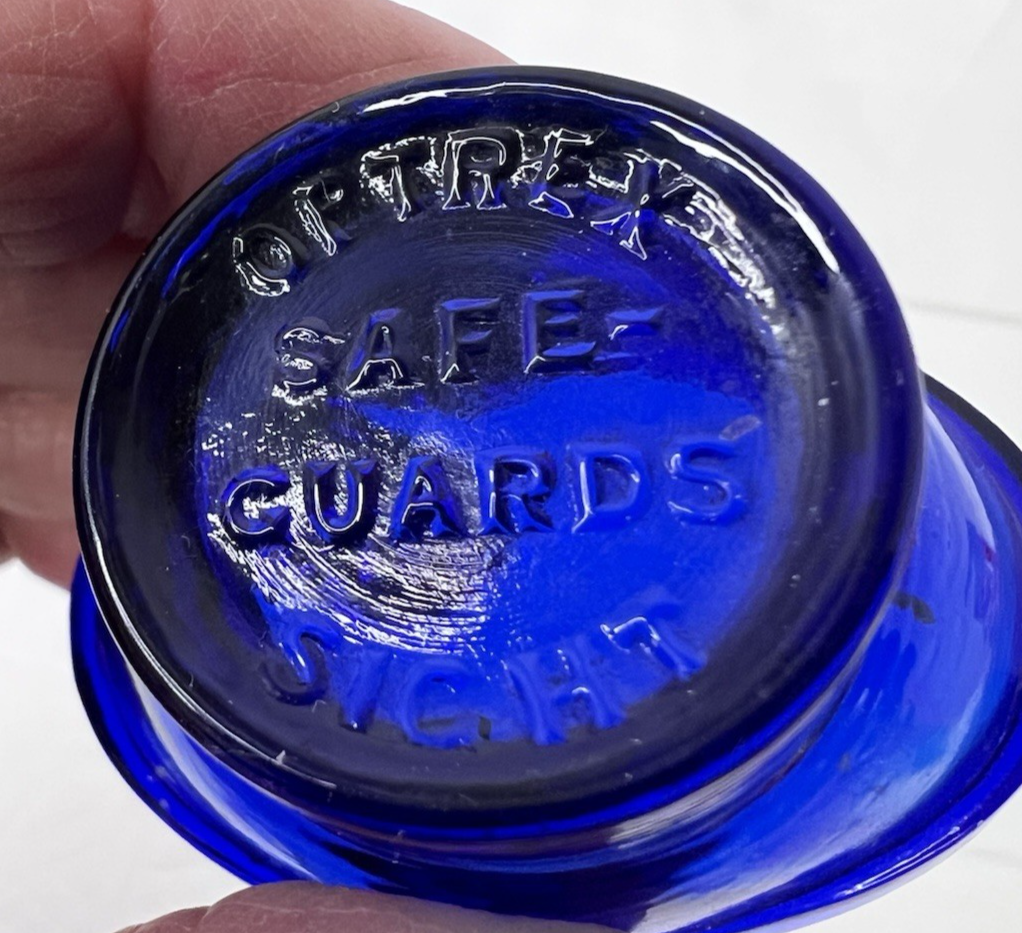 - Antique Glass Eye Wash Cup Cobalt Optrex Safe-Guards Site Optical Medical 1 3/8"
