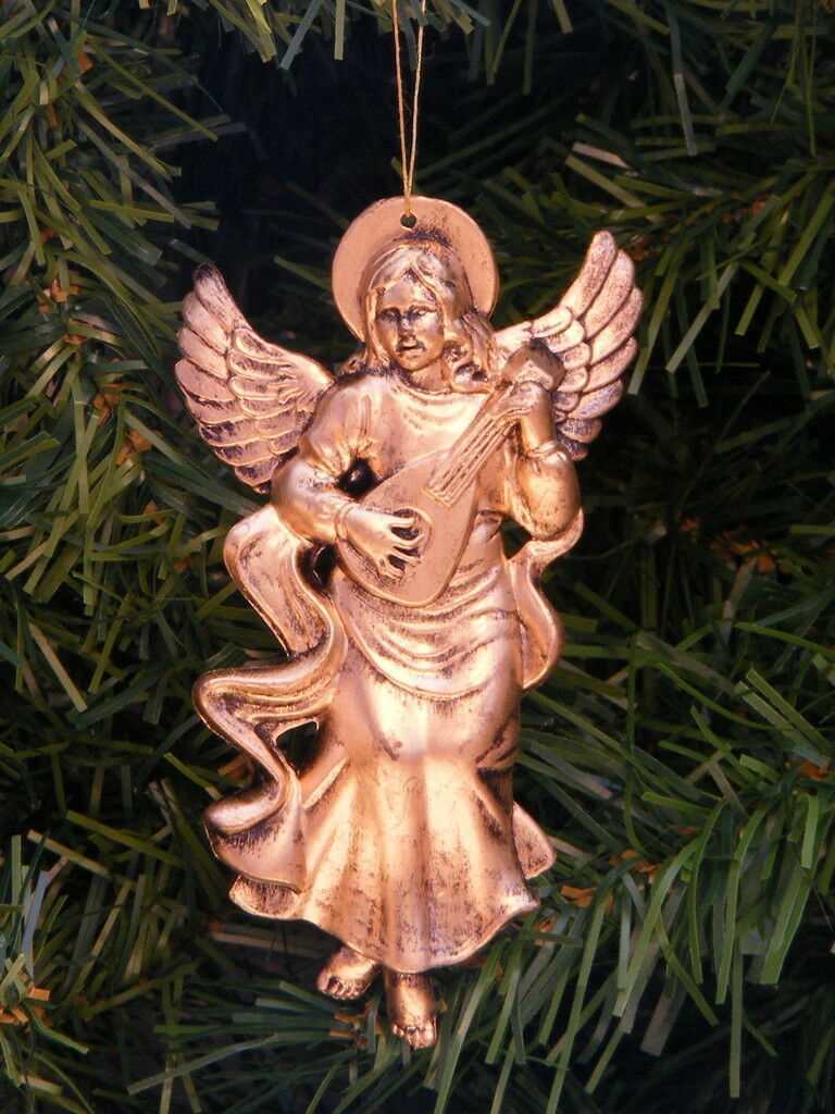 Bronson Imports Antique Gold Herald Angel Playing Lute Christmas Ornament !