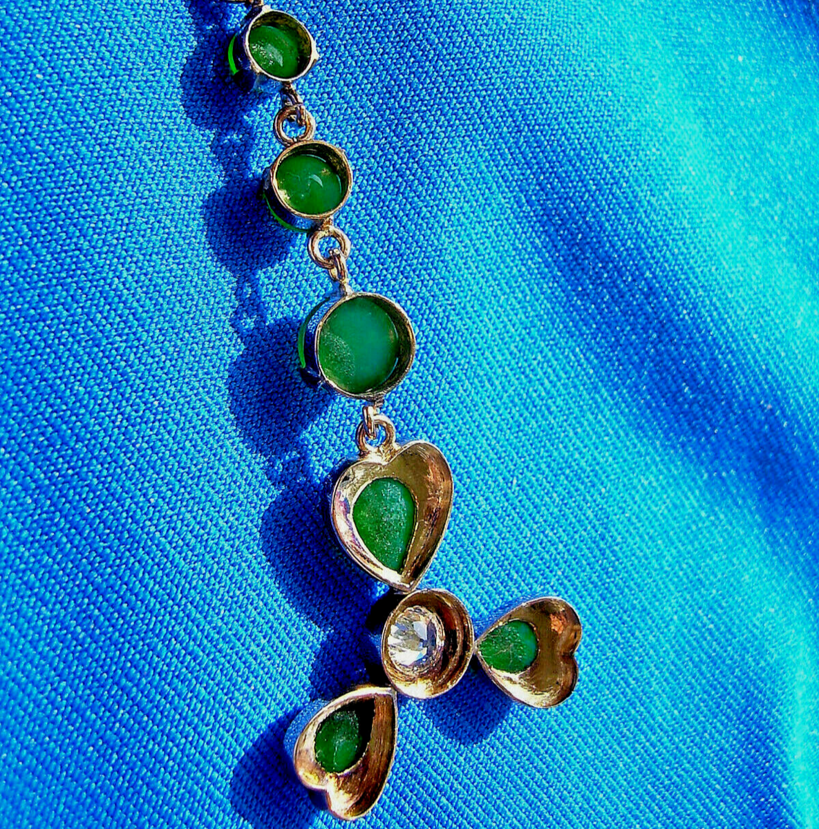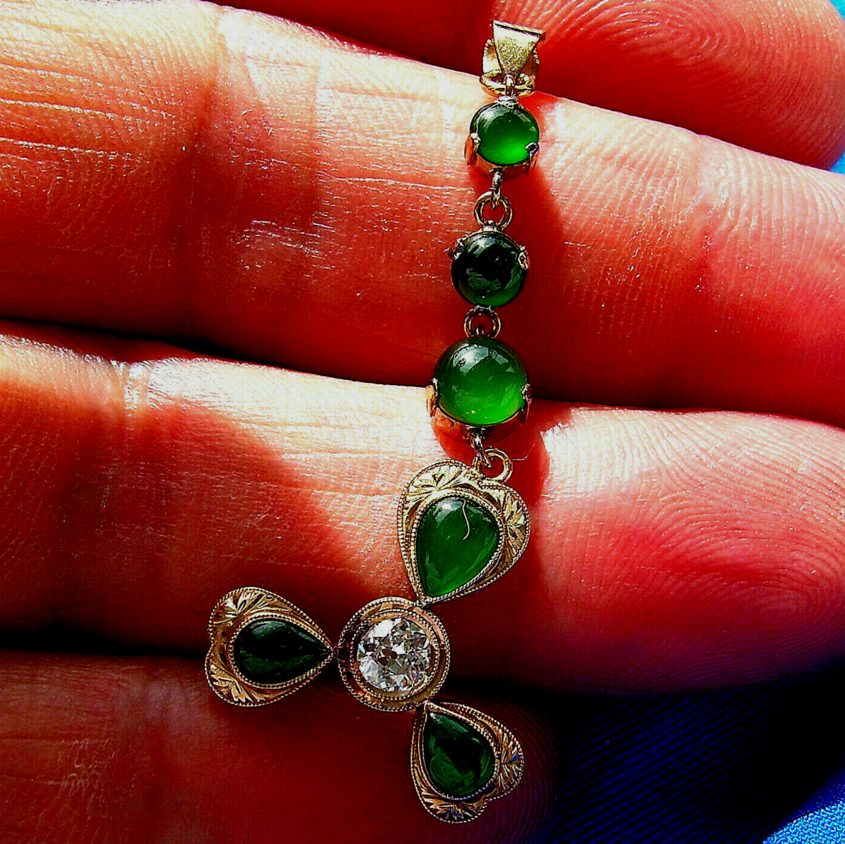 - Antique Green Jade European Diamond Deco Pendant Victorian 14 Rose Gold Charm