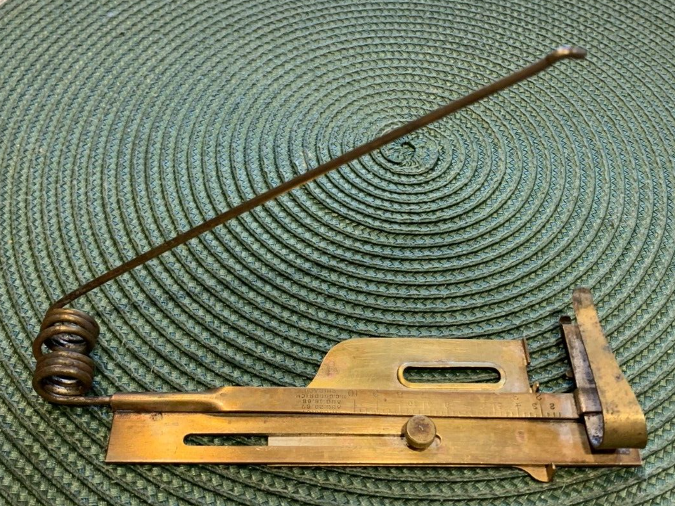 This antique brass sewing machine tuck-marker tool was made by H. C. Goodrich in 1867/1868, making it a true rarity in the world of antique sewing machines.