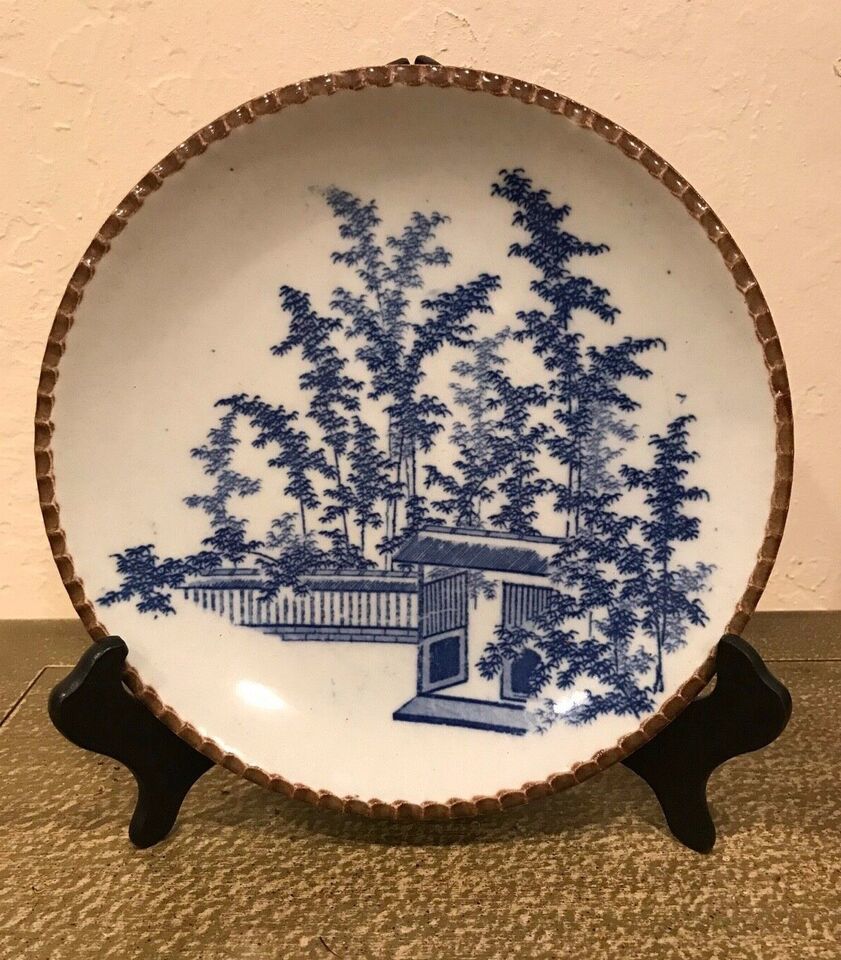 - Antique Japanese Koransha Blue & White Igezara plate brown scallop edge marked
