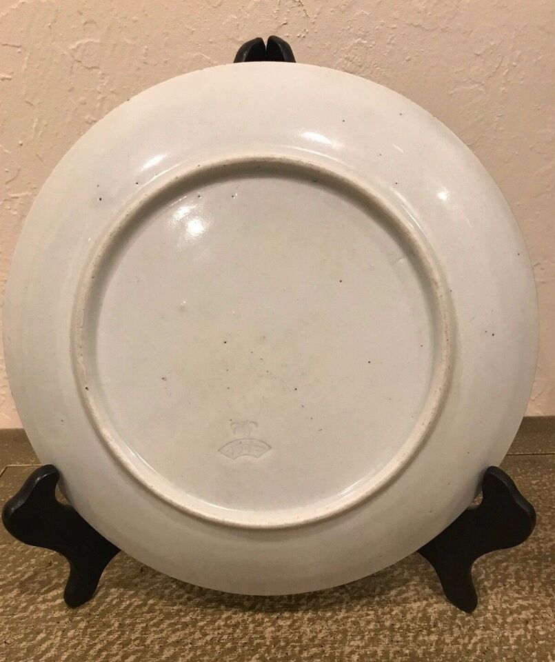 Antique Japanese Koransha Blue & White Igezara plate brown scallop edge marked