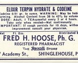 Vintage Pharmacy Label ELIXIR TERPIN HYDRATE & CODEINE Fred Hoose |